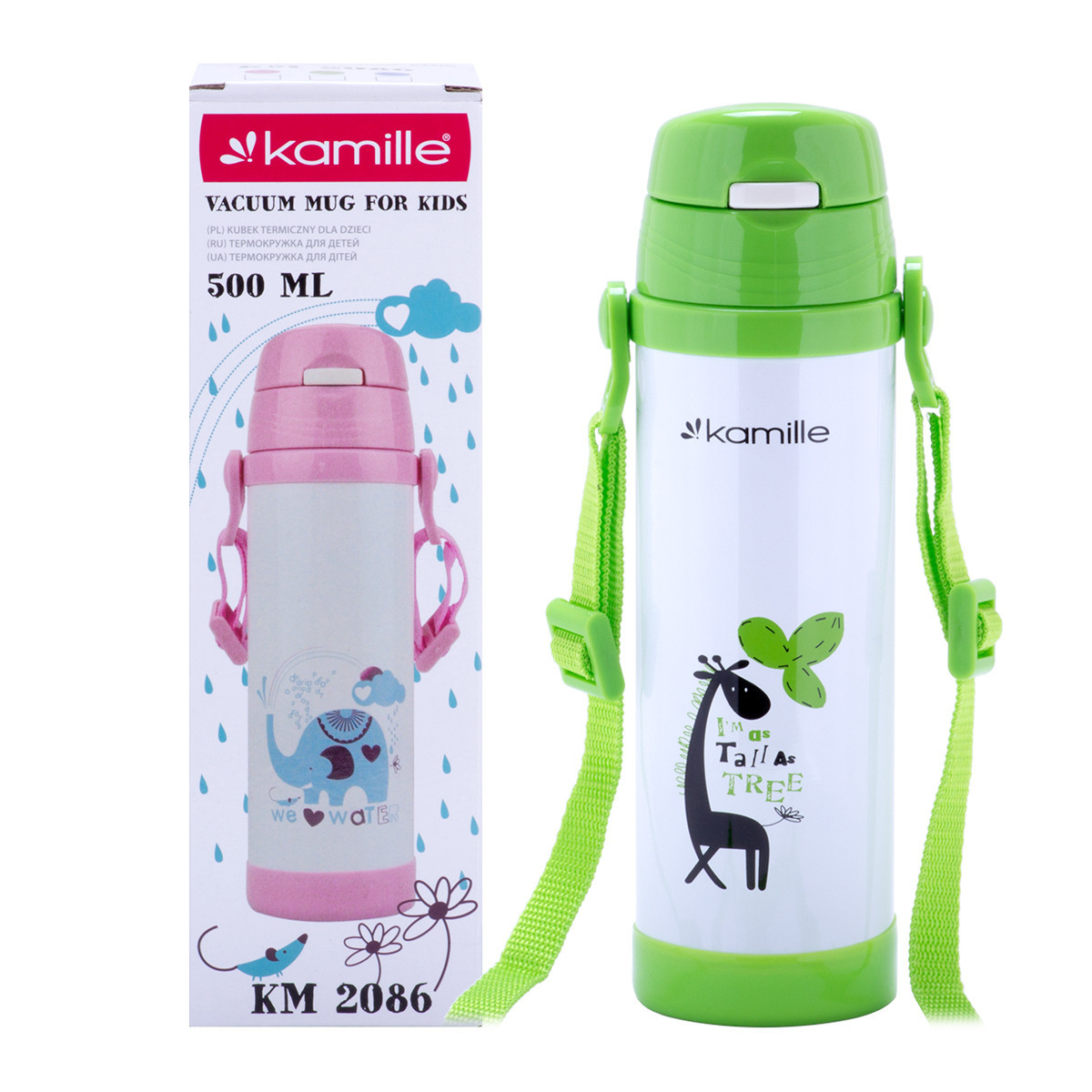 Термобутылка детская kamille зеленый 550мл из нержавеющей стали km-2086zl. Бренд: Kamille Описание: Детская термо-бутылка Kamille из нержавеющей обладает высоким качеством, надежностью, компактными размерами и эстетичным дизайном. Такая термобутылочка с эксклюзивным дизайном станет просто незаменимой для Вашего ребенка в машине, на отдыхе, на прогулке или в путешествии. Тип термоса: питьевой. Материал корпуса: нержавеющая сталь, пластик ПП + съемная антискользящая накладка из силикона.. Материал колбы: нержавеющая сталь. Материал крышки: пластик ПП, силикон. Объем: 500мл. Высота: 23,5см. Съемный клапан: есть. Наличие трубочки для питья: есть. Ремешок: есть. Время сохранения температуры: 6-8 часов. Цвет: розовый, Зеленый, зеленый. Рисунок: есть. Упаковка: картонная коробка 24*7,5*7,5см. Особенности: эксклюзивный дизайн высокопрочная конструкция удобная и прочная крышка-поилка 100% герметичен