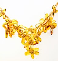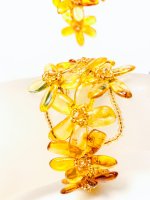 Изящный браслет с цветами из балтийского янтаря и бисера