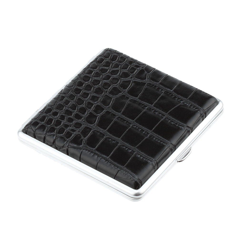 Портсигар S.Quire, нержавеющая сталь, искуственная кожа, чёрный, 9,6х9,3х1