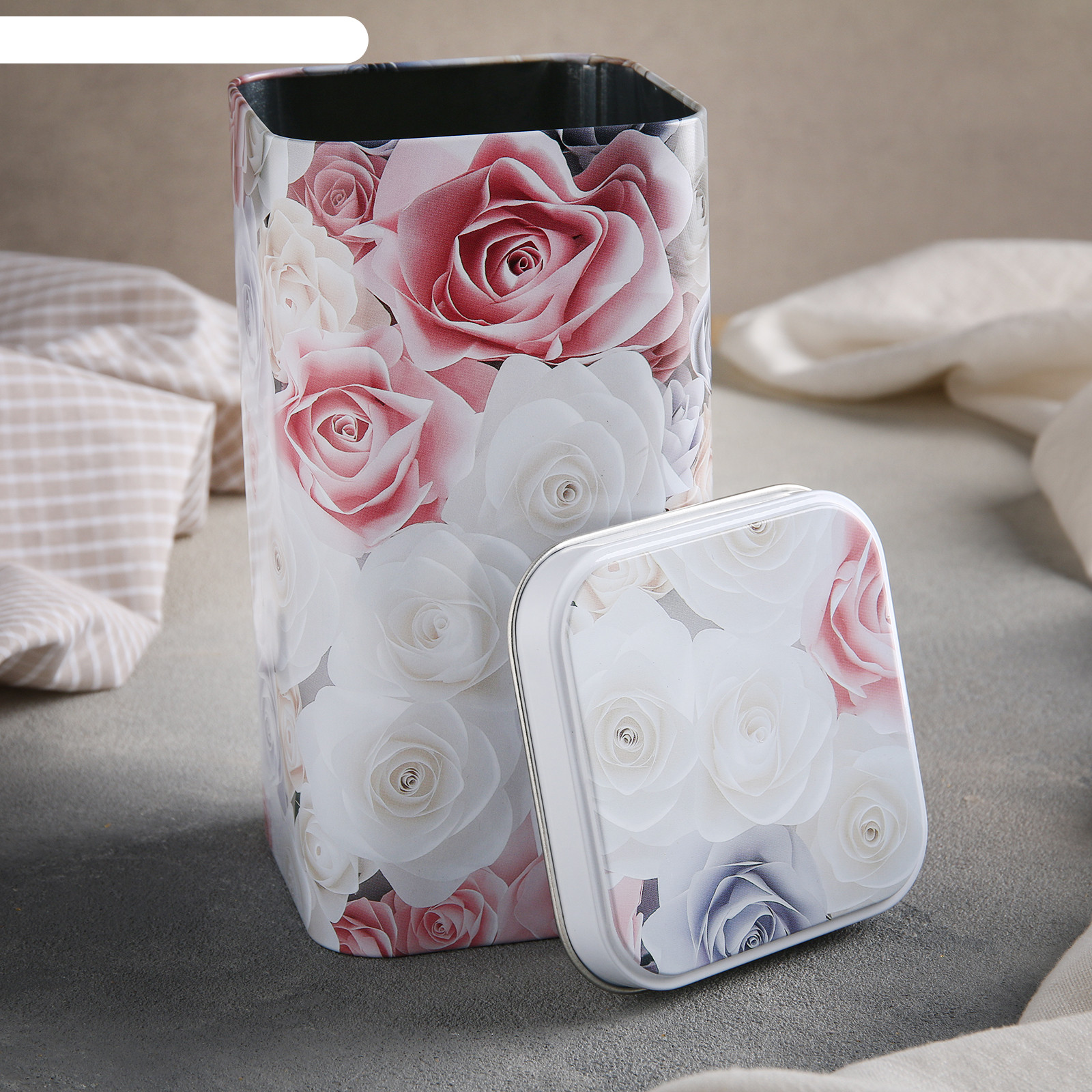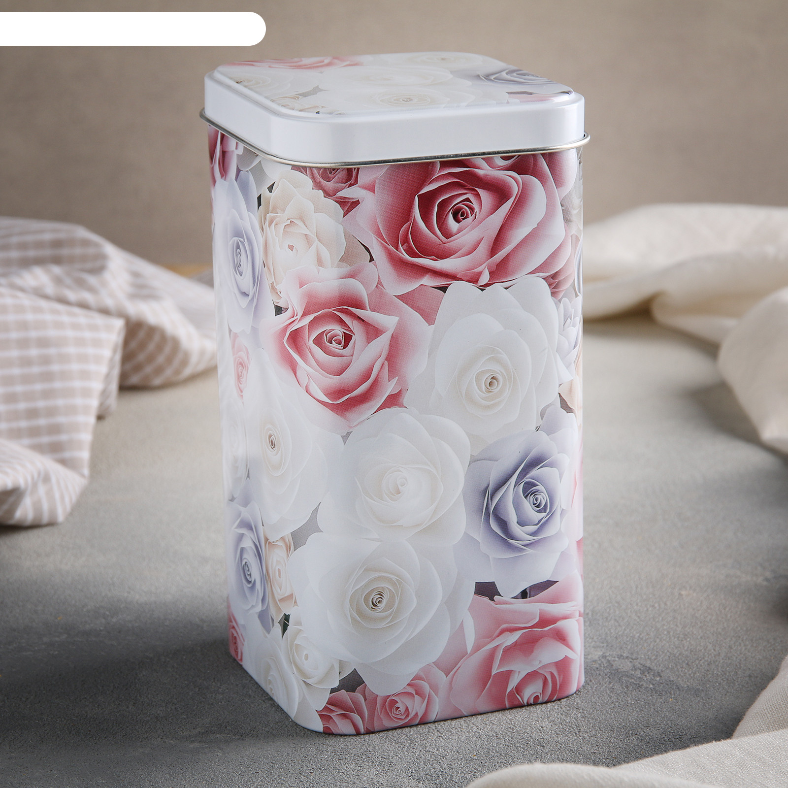 Банка для сыпучих продуктов 1,4 л флора, прямоугольная, 9х9х17,1 см