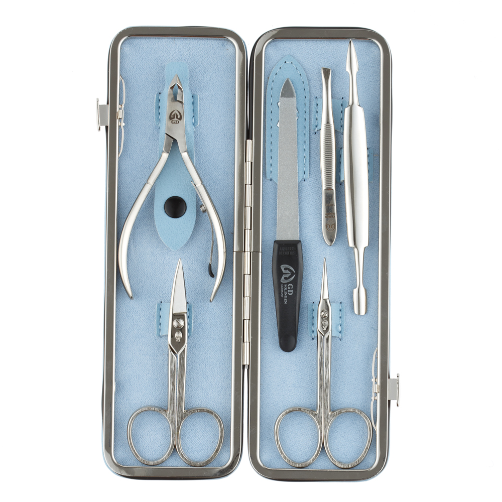 Маникюрный набор gd, 6 пр. футляр: искусственная кожа, цвет серо-голубой. Бренд: GD Описание: Маникюрный набор GD, 6 пр. Инструменты: ножницы для кутикулы, ножницы для ногтей, кусачки для кутикулы, пилка металлическая 12,5 см, пинцет скошенный, двойной маникюрный инструмент. Футляр: искусственная кожа, цвет серо-голубой, фактура - гладкая Страна: РОССИЯ Доп. Описание: Маникюрный набор GD 2161GBSM с комплектацией из 6 инструментов. Футляр: высококачественная искусственная кожа в серо-голубом цвете, фактура - гладкая Комплектация: • ножницы для кутикулы - углеродистая сталь, никелированное покрытие, 9 см • ножницы для ногтей - углеродистая сталь, никелированное покрытие, 9 см • кусачки для кутикулы - нержавеющая сталь, никелированное покрытие, 10 см • пилка металлическая - углеродистая сталь, хромированное покрытие, 12.5 см • пинцет скошенный - нержавеющая сталь, никелированное покрытие, 8 см • шабер двусторонний - нержавеющая сталь, никелированное покрытие, 12 см На протяжении 15 лет торговая марка GD успешно развивает производство маникюрных наборов и инструментов. На российском рынке бренд GD зарекомендовал себя как производитель высококлассных инструментов для маникюра и педикюра, предлагающий ассортимент по доступным ценам. Ключевые особенности маникюрных наборов GD: • Маникюрные наборы GD - это отличное сочетание высокого качества и конкурентных цен. • Футляры изготовлены из первоклассной искусственной кожи. Модные и стильные расцветки и фактуры выделяют маникюрные наборы GD среди других брендов. • Инструменты произведены из нержавеющей либо углеродистой стали на ведущих заводах по всему миру. • Высококачественные материалы, используемые при производстве инструментов, обеспечивают надежность, прочность и долговечность изделий. • Для маникюрных наборов GD разработана самая оптимальная комплектация инструментов. В каждом наборе Вы найдете для себя только действительно нужные и функциональные инструменты. • Широкий ассортимент, распределенный на коллекции. Благодаря стильному дизайну маникюрные наборы GD прекрасно подойдут в качестве идеального подарка как женщине, так и мужчине. С маникюрными наборами GD ежедневный уход станет по-настоящему легким и профессиональным.