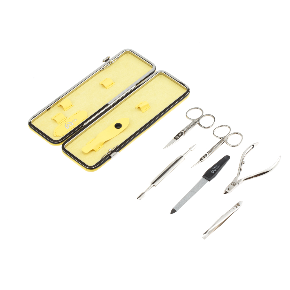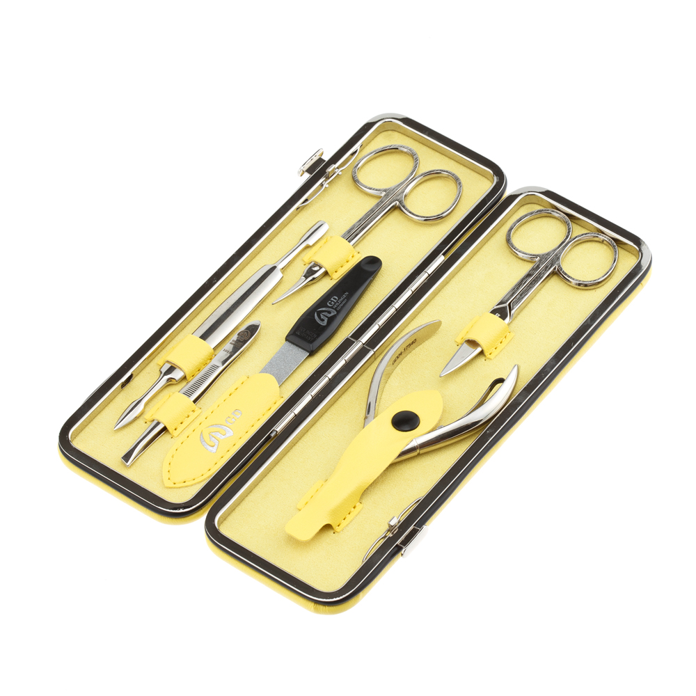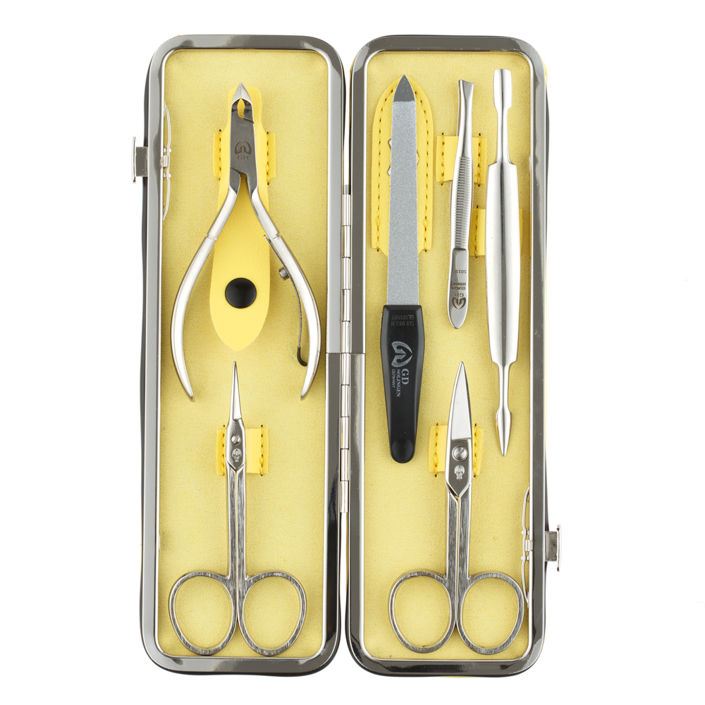 Маникюрный набор gd, 6 пр. футляр: искусственная кожа, цвет желтый. Бренд: GD Описание: Маникюрный набор GD, 6 пр. Инструменты: ножницы для кутикулы, ножницы для ногтей, кусачки для кутикулы, пилка металлическая 12,5 см, пинцет скошенный, двойной маникюрный инструмент. Футляр: искусственная кожа, цвет желтый, фактура - гладкая Страна: РОССИЯ Доп. Описание: Маникюрный набор GD 2161YESM с комплектацией из 6 инструментов. Футляр: высококачественная искусственная кожа в желтом цвете, фактура - гладкая Комплектация: • ножницы для кутикулы - углеродистая сталь, никелированное покрытие, 9 см • ножницы для ногтей - углеродистая сталь, никелированное покрытие, 9 см • кусачки для кутикулы - нержавеющая сталь, никелированное покрытие, 10 см • пилка металлическая - углеродистая сталь, хромированное покрытие, 12.5 см • пинцет скошенный - нержавеющая сталь, никелированное покрытие, 8 см • шабер двусторонний - нержавеющая сталь, никелированное покрытие, 12 см На протяжении 15 лет торговая марка GD успешно развивает производство маникюрных наборов и инструментов. На российском рынке бренд GD зарекомендовал себя как производитель высококлассных инструментов для маникюра и педикюра, предлагающий ассортимент по доступным ценам. Ключевые особенности маникюрных наборов GD: • Маникюрные наборы GD - это отличное сочетание высокого качества и конкурентных цен. • Футляры изготовлены из первоклассной искусственной кожи. Модные и стильные расцветки и фактуры выделяют маникюрные наборы GD среди других брендов. • Инструменты произведены из нержавеющей либо углеродистой стали на ведущих заводах по всему миру. • Высококачественные материалы, используемые при производстве инструментов, обеспечивают надежность, прочность и долговечность изделий. • Для маникюрных наборов GD разработана самая оптимальная комплектация инструментов. В каждом наборе Вы найдете для себя только действительно нужные и функциональные инструменты. • Широкий ассортимент, распределенный на коллекции. Благодаря стильному дизайну маникюрные наборы GD прекрасно подойдут в качестве идеального подарка как женщине, так и мужчине. С маникюрными наборами GD ежедневный уход станет по-настоящему легким и профессиональным.
