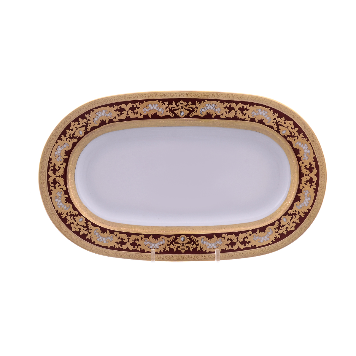 Блюдо овальное Falkenporzellan Alena 3d Bordeaux Gold Constanza 24 см