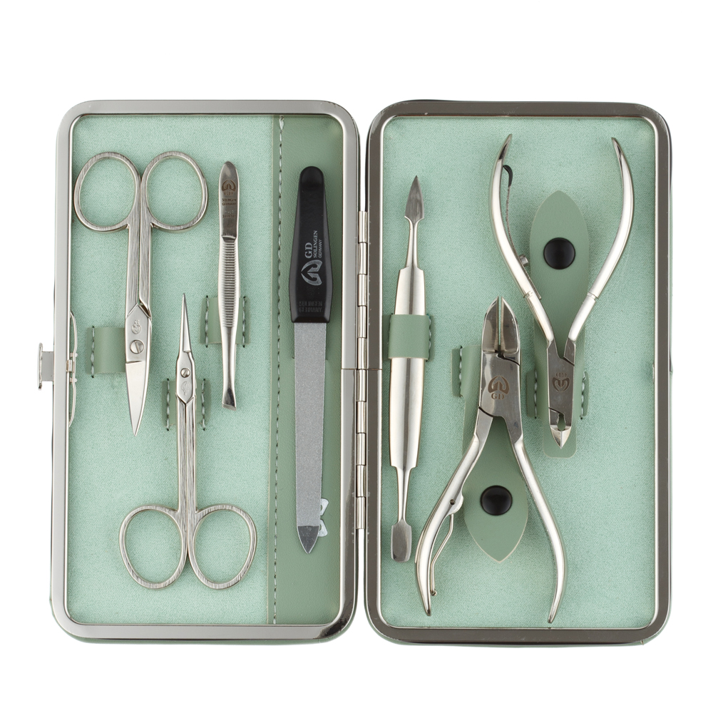 Маникюрный набор gd, 7 пр. футляр: искусственная кожа, цвет зеленый. Бренд: GD Описание: Маникюрный набор GD, 7 пр. Инструменты: ножницы для кутикулы, ножницы для ногтей, кусачки для кутикулы, кусачки для ногтей, пилка металлическая 12,5 см, пинцет скошенный, двойной маникюрный инструмент. Футляр: искусственная кожа, цвет зеленый, фактура - гладкая Страна: РОССИЯ Доп. Описание: Маникюрный набор GD 2172GRSM с комплектацией из 7 инструментов. Футляр: высококачественная искусственная кожа в зеленом цвете, фактура - гладкая Комплектация: • ножницы для кутикулы - углеродистая сталь, никелированное покрытие, 9 см • ножницы для ногтей - углеродистая сталь, никелированное покрытие, 9 см • кусачки для кутикулы - нержавеющая сталь, никелированное покрытие, 10 см • кусачки для ногтей - нержавеющая сталь, никелированное покрытие, 10,5 см • пилка металлическая - углеродистая сталь, хромированное покрытие, 12.5 см • пинцет скошенный - нержавеющая сталь, никелированное покрытие, 8 см • шабер двусторонний - нержавеющая сталь, никелированное покрытие, 12 см На протяжении 15 лет торговая марка GD успешно развивает производство маникюрных наборов и инструментов. На российском рынке бренд GD зарекомендовал себя как производитель высококлассных инструментов для маникюра и педикюра, предлагающий ассортимент по доступным ценам. Ключевые особенности маникюрных наборов GD: • Маникюрные наборы GD - это отличное сочетание высокого качества и конкурентных цен. • Футляры изготовлены из первоклассной искусственной кожи. Модные и стильные расцветки и фактуры выделяют маникюрные наборы GD среди других брендов. • Инструменты произведены из нержавеющей либо углеродистой стали на ведущих заводах по всему миру. • Высококачественные материалы, используемые при производстве инструментов, обеспечивают надежность, прочность и долговечность изделий. • Для маникюрных наборов GD разработана самая оптимальная комплектация инструментов. В каждом наборе Вы найдете для себя только действительно нужные и функциональные инструменты. • Широкий ассортимент, распределенный на коллекции. Благодаря стильному дизайну маникюрные наборы GD прекрасно подойдут в качестве идеального подарка как женщине, так и мужчине. С маникюрными наборами GD ежедневный уход станет по-настоящему легким и профессиональным.