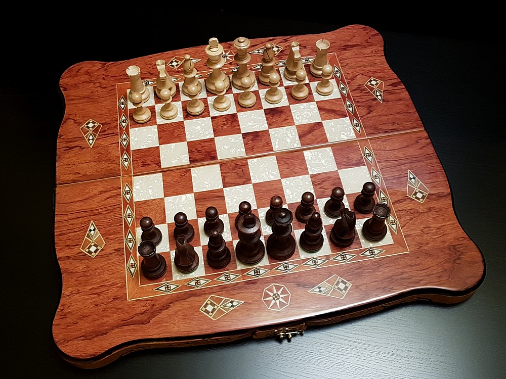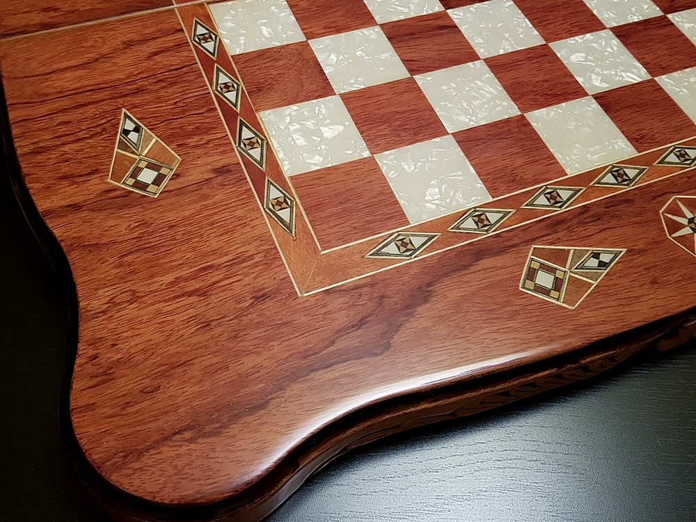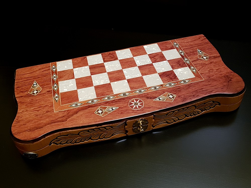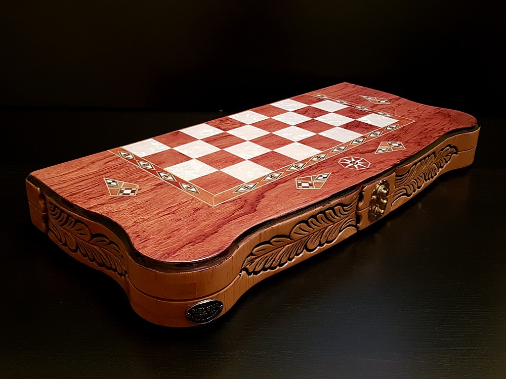 Шахматы - нарды "вавилон" роза. Подарочные нарды в виде старинной книги. Изготовлены из массива красного дерева махагон. Каждая игровая фишка имеет гравировку с гербом России. В комплект входят: игровая доска, фишки дубовые с гравировкой (d28 мм) - 30 шт., пластиковые зари - 2 шт. Размер в сложенном виде - 60х35х6 см, в разложенном - 60х70х3 см. Размер 52х24х6 см Вес 3 кг Исполнение инкрустация / маркетри Материал доски бук Тип доски складная Высота короля 9 см Высота пешки 4,5 см Фигуры утяжеленные Материал фигур бук Производитель Helena Wood Art Страна производства Турция Упаковка фирменная сумка-чехол