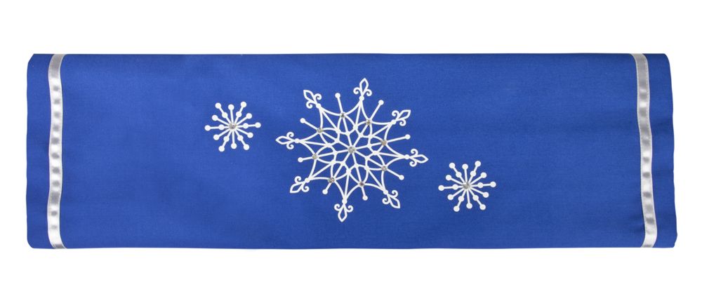 Упаковка-конфета «снежинки», синяя. Размеры 54х18 см Материал хлопок 100%; стразы Вес (1 шт.) 91,67 г Транспортная упаковка 41,0x37,0x21,0 см Вес 11,00 кг Объем упаковки 0,032 м? Количество в упаковке 120 шт. Виды нанесения D-Шелкография ES-Цифровой трансфер (на ленту) Упаковка имеет завязки с двух сторон. Максимальная длина подарка 25 см.