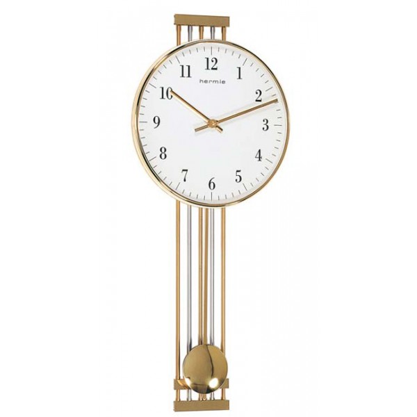 Настенные кварцевые часы 2200-00-722. Настенные Часы Hermle 2200-00-722 Настенные часы Hermle 2200-00-722 имеют надежный кварцевый механизм. Часы оборудованы маятником. Корпус этих часов выполнен из металла (латунь), Классический круглый белый циферблат с золотистым ободом. Временные рамки обозначены большими арабскими цифрами Характеристики часов Hermle 2200-00-722 : Механизм - кварцевый Размер - 24х56х7 см Корпус - металл Гарантия: 2 год. Производство: Германия