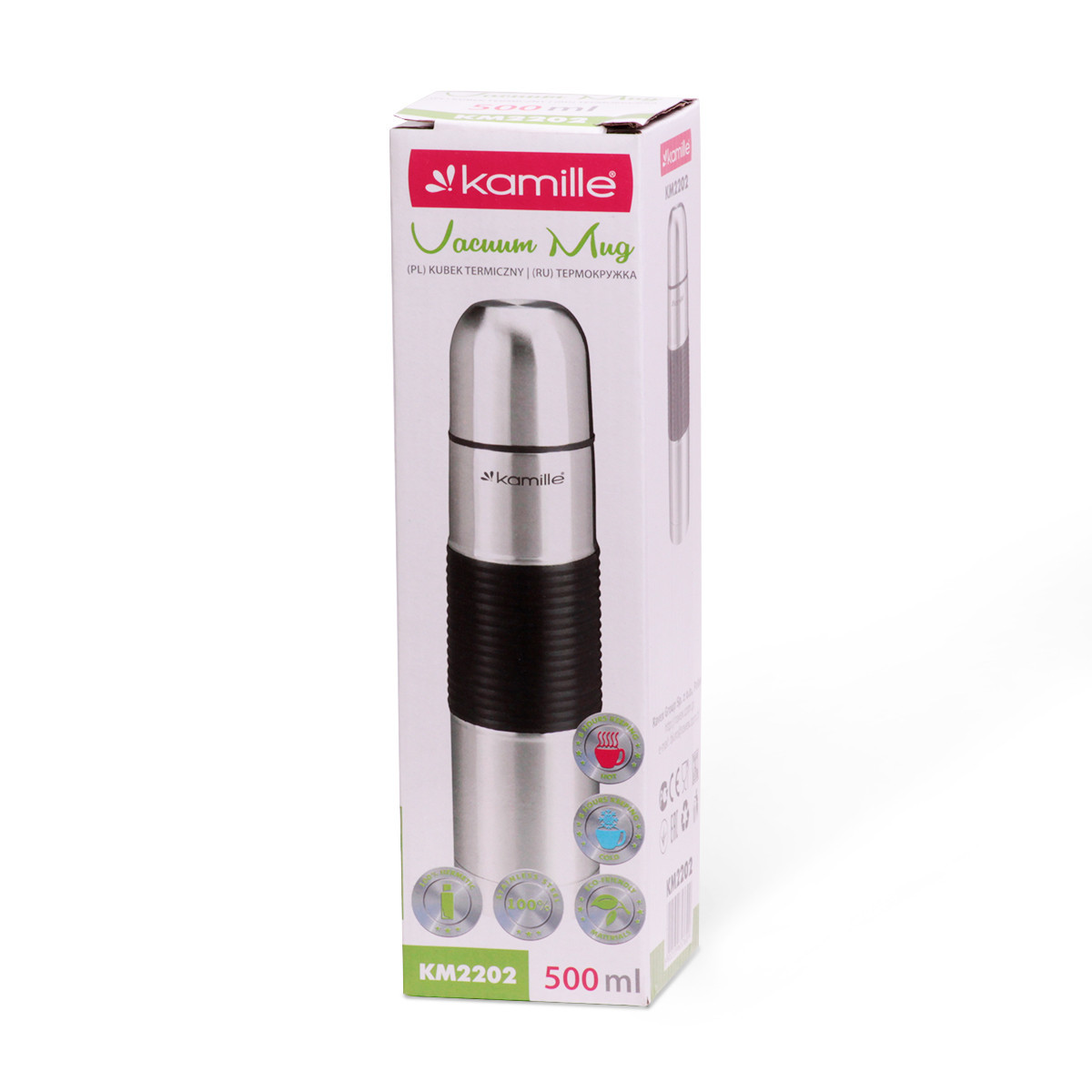 Термос 500мл из нержавеющей стали с резиновой вставкой