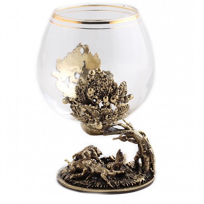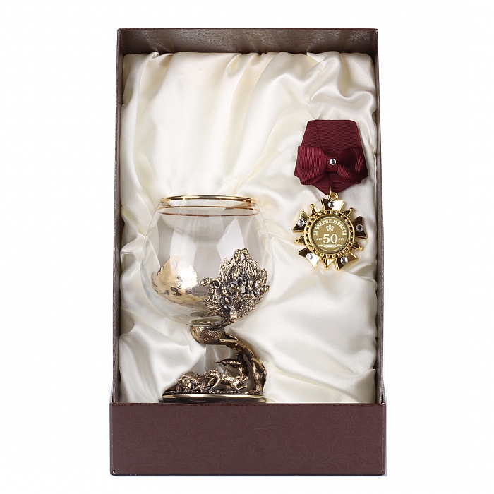 Бокал для коньяка охота на кабана+орден с юбилеем 50 лет, к/к с накладкой