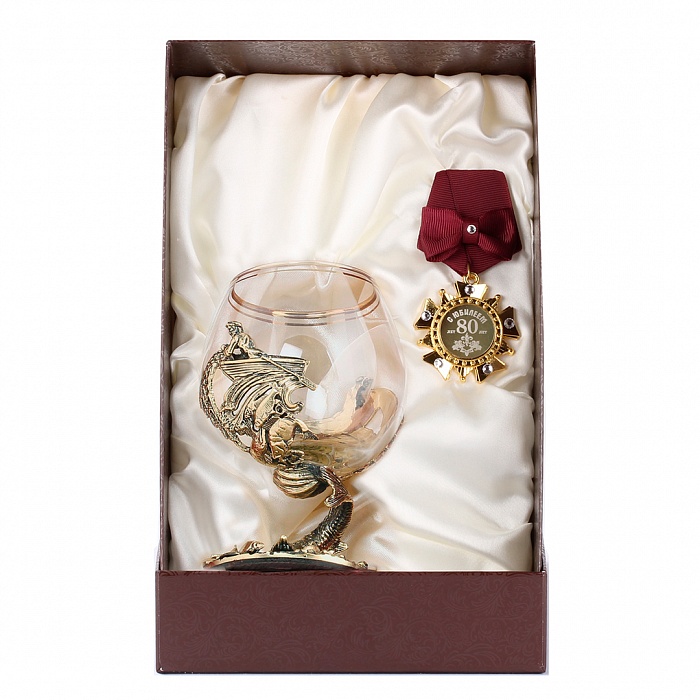 Бокал для коньяка осетр +орден с юбилеем 80 лет, к/к с накладкой