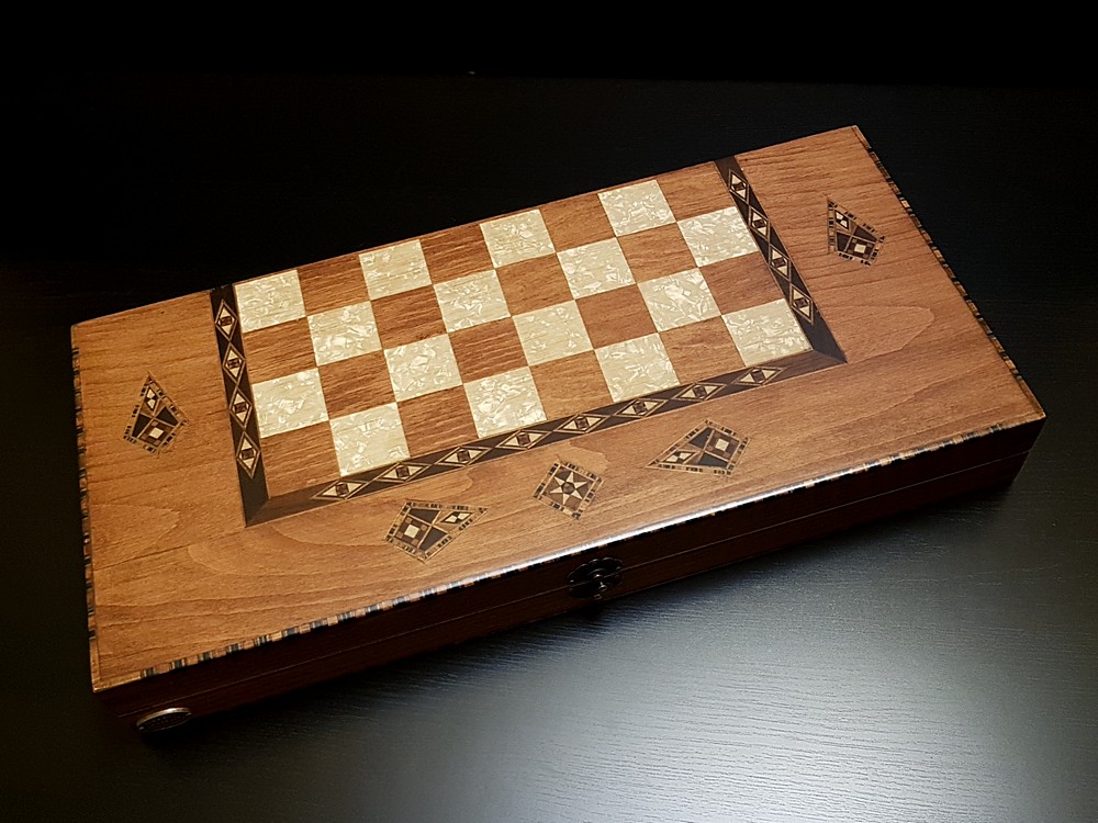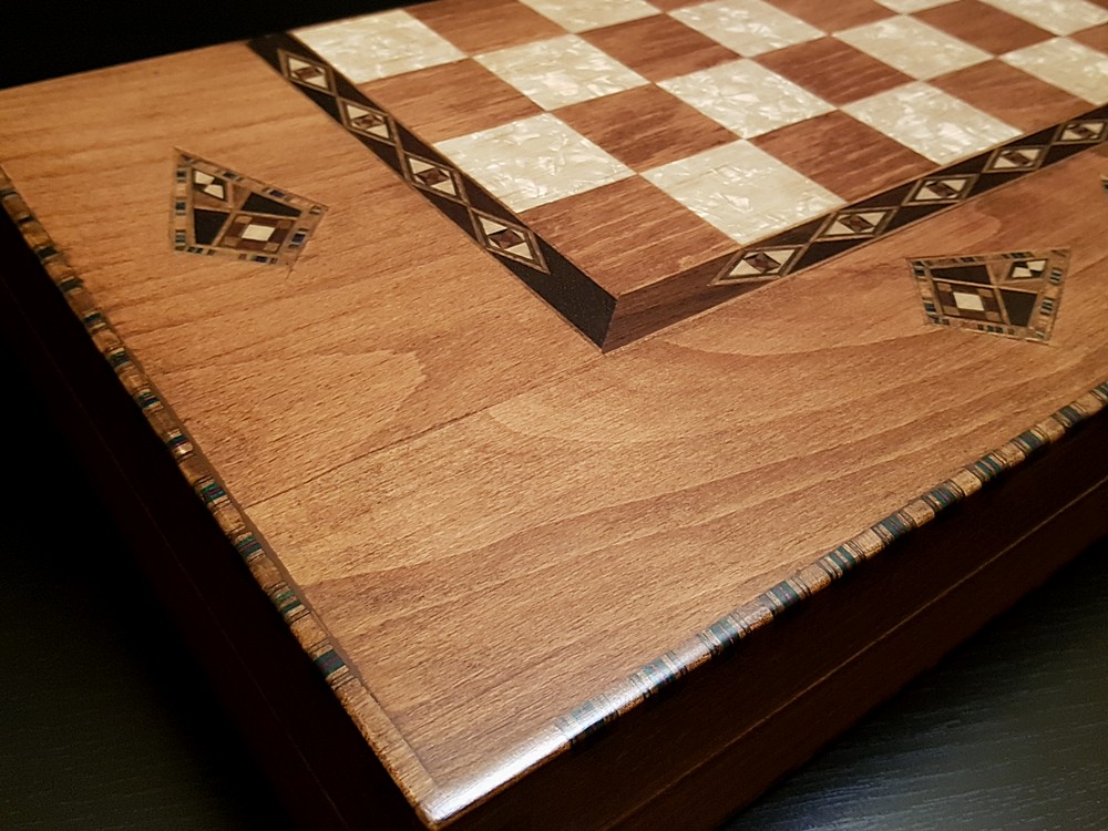 Шахматы - нарды "константа 54 см" граб антик. Подарочные нарды в виде старинной книги. Изготовлены из массива красного дерева махагон. Каждая игровая фишка имеет гравировку с гербом России. В комплект входят: игровая доска, фишки дубовые с гравировкой (d28 мм) - 30 шт., пластиковые зари - 2 шт. Размер в сложенном виде - 60х35х6 см, в разложенном - 60х70х3 см. Размер 54х26х7 см Вес 3,8 кг Исполнение инкрустация / маркетри Материал доски бук Тип доски складная Высота короля 9 см Высота пешки 4,5 см Фигуры утяжеленные Материал фигур бук Производитель Helena Wood Art Страна производства Турция Упаковка фирменная сумка-чехол