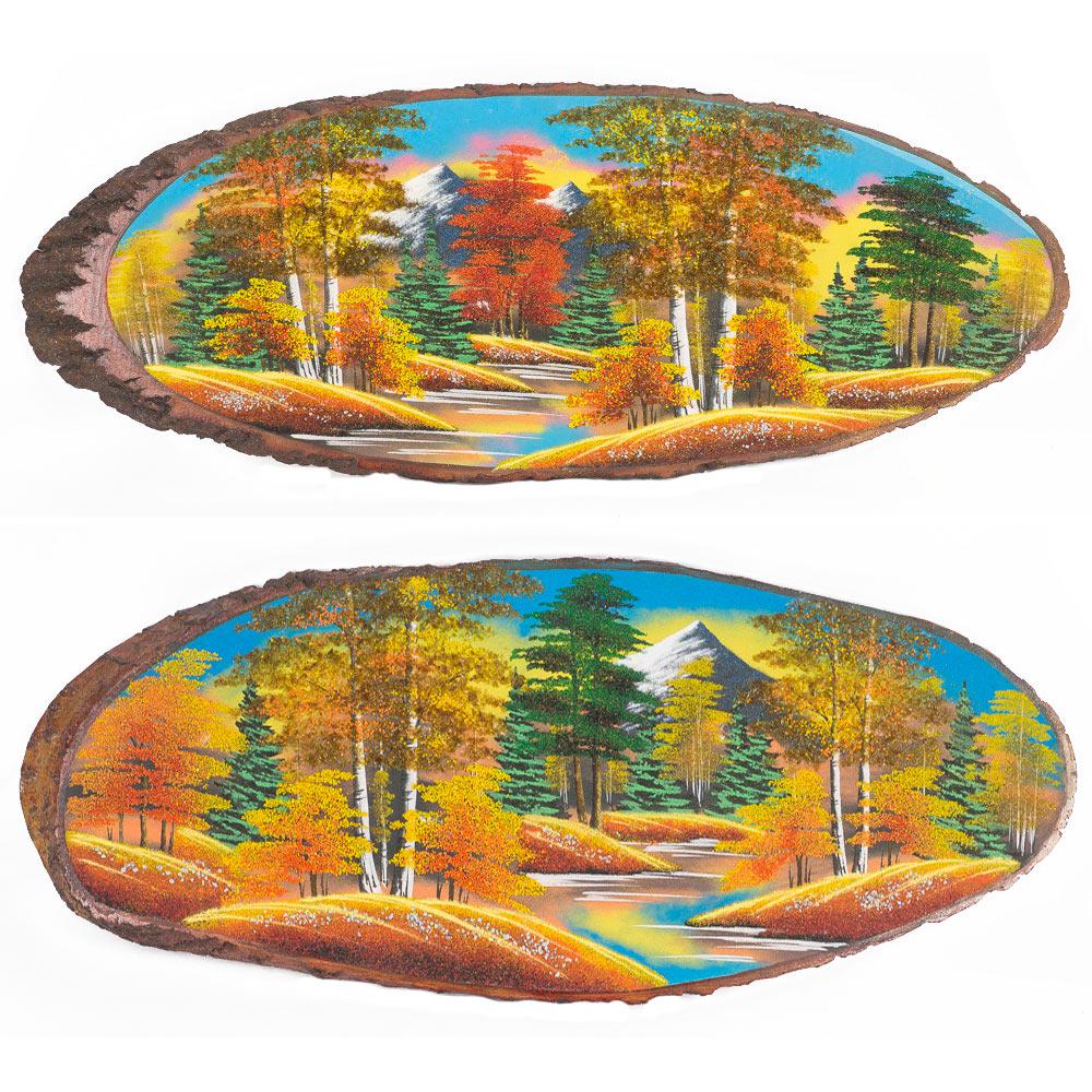 Панно на срезе дерева "осень" горизонтальное 90-95 см