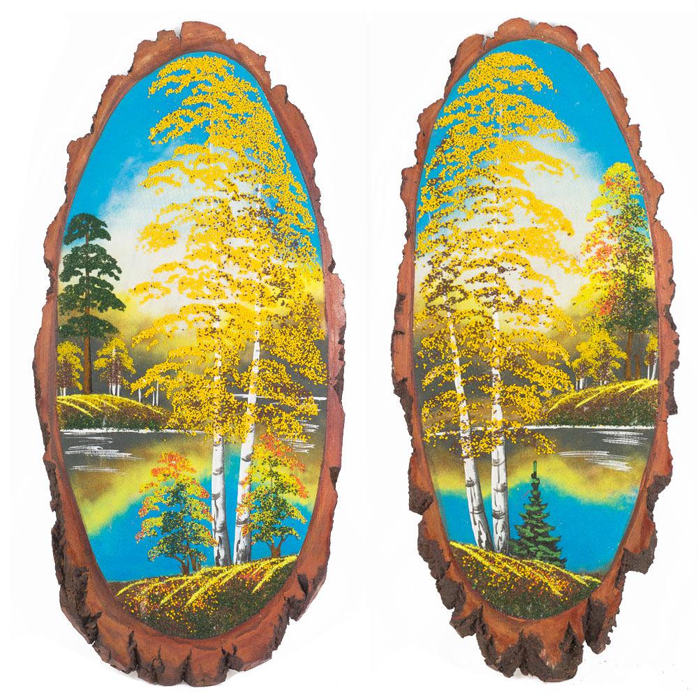 Панно на срезе дерева "осень" вертикальное 85-90 см