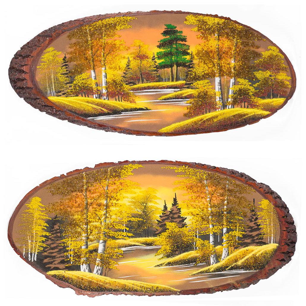 Панно на срезе дерева "осень янтарная" горизонтальное 80-85 см.
