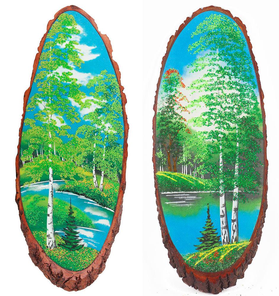 Панно на срезе дерева "лето" вертикальное 85-90 см