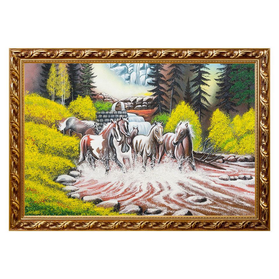 Картина бегущие лошади багет гипс №6 (40х60 см)