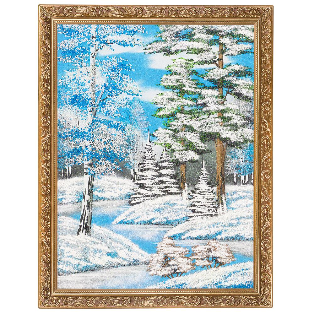 Картина зимний пейзаж багет гипс №4 (30х40 см) верт. в ассортименте