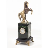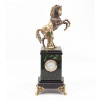 Часы конь с попоной нефрит бронза. Вес 2500 г Размер 10,5х10,5х29,5 см Материал нефрит, долерит, бронза Месторождение Миасское, Челябинская область, Россия  развернуть описание ▼