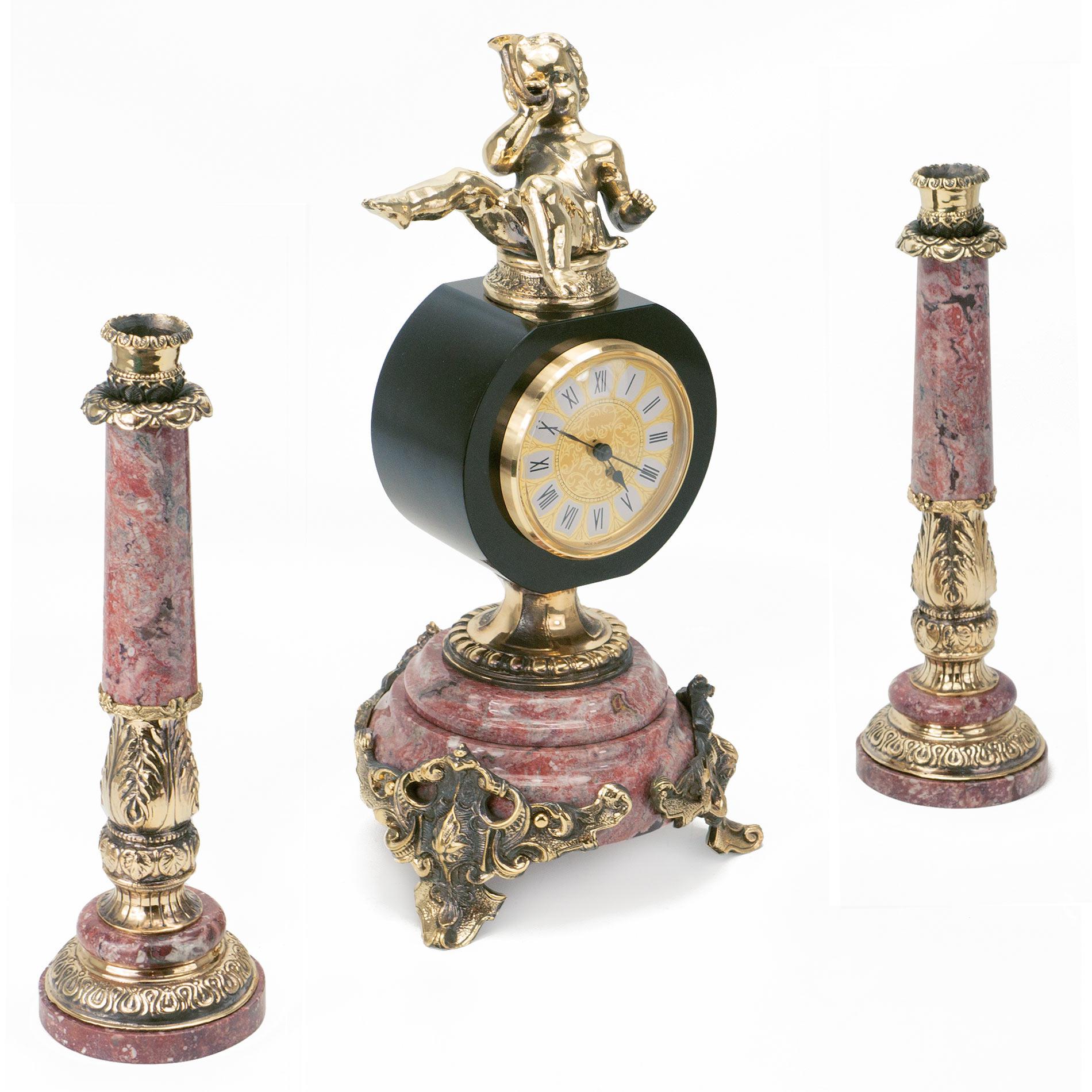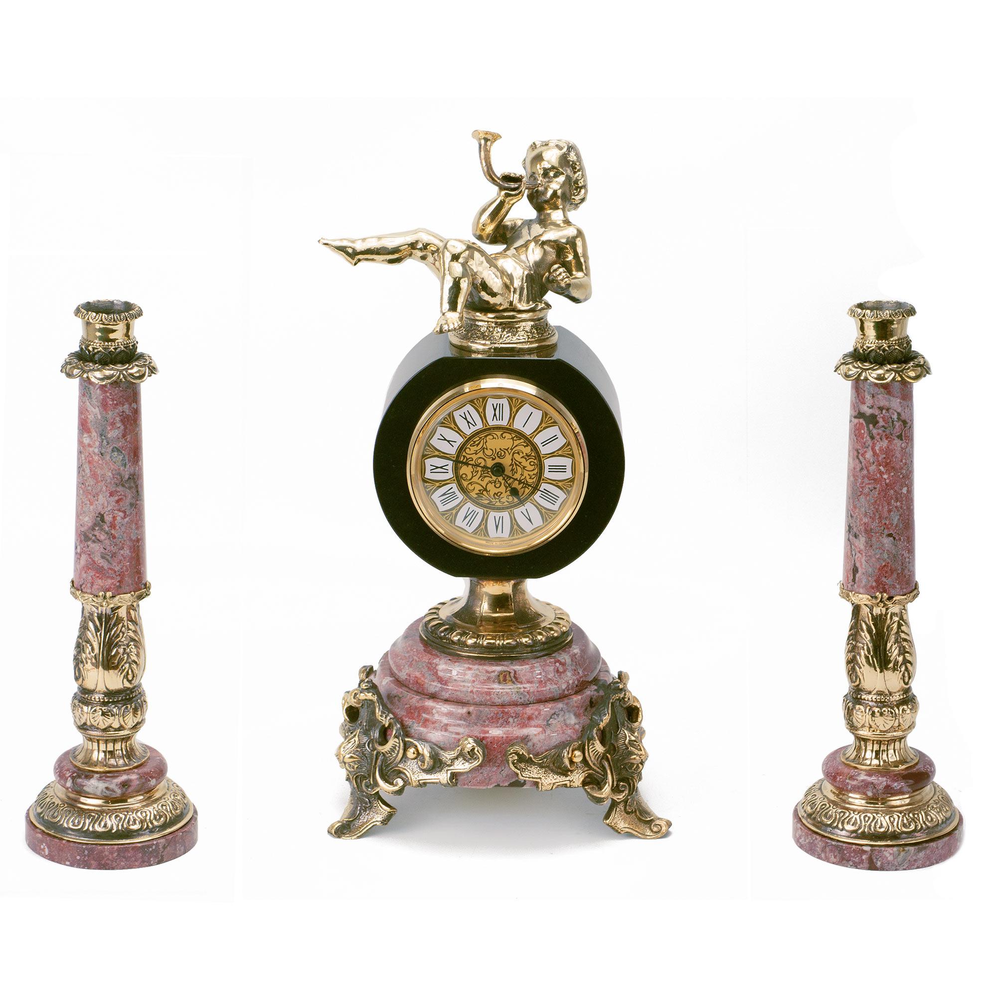 Часы с подсвечниками ангел с дудочкой бронза креноид