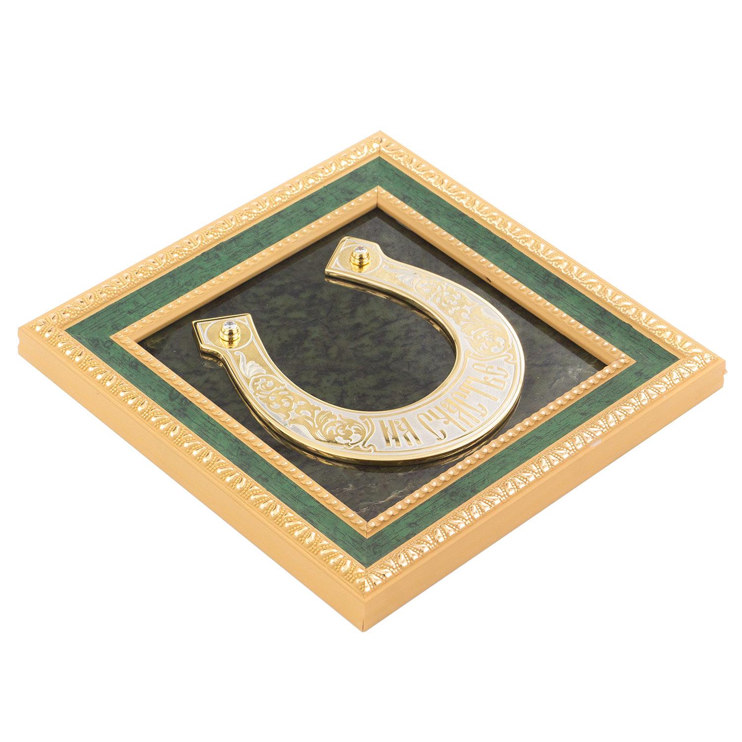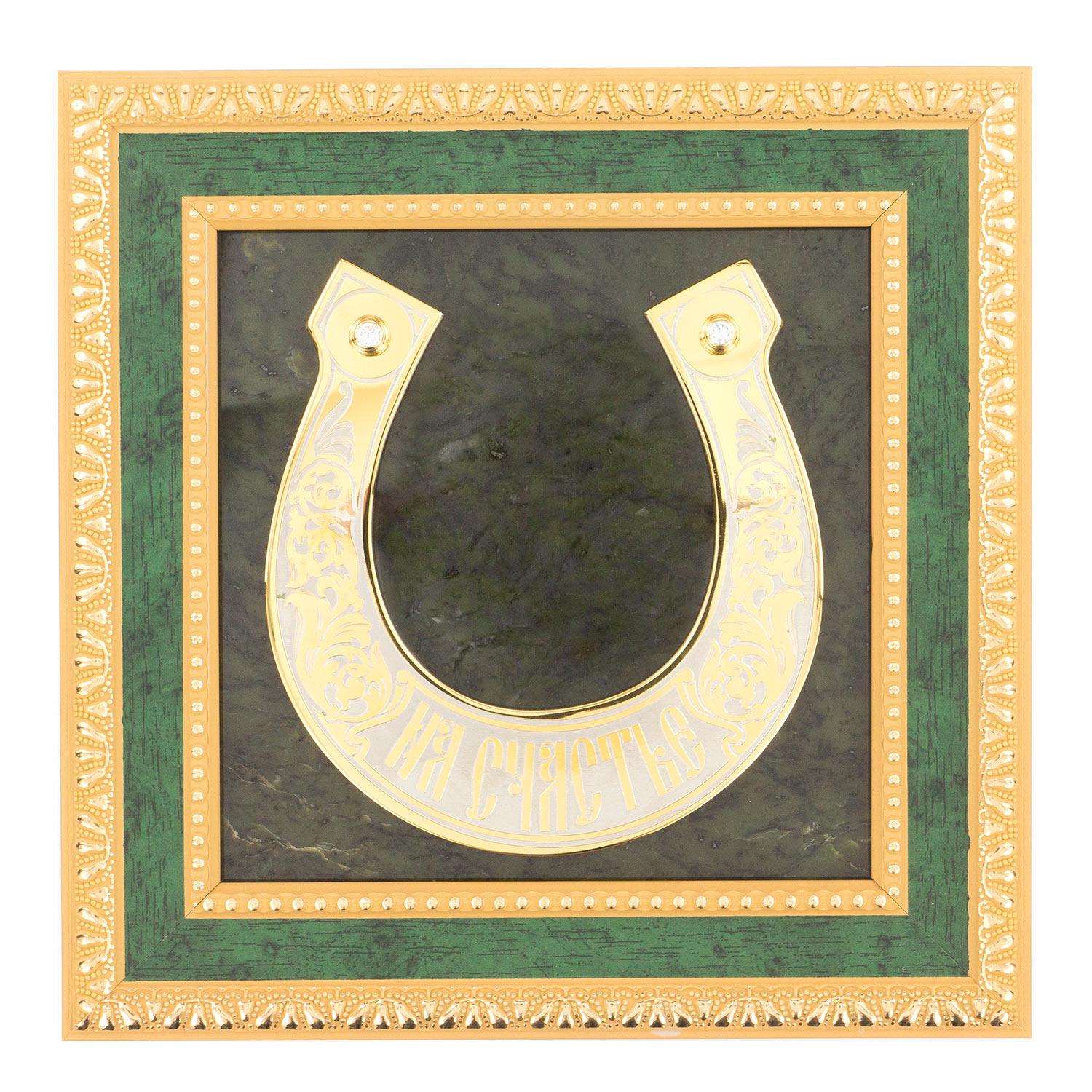 Панно подкова на счастье нефрит багет 180х180х20 мм 1100 гр.. Вес 1100 г Размер 18х18х2 см Материал нефрит, латунь, никель, покрытие золотом (999,9). Месторождение Миасское, Челябинская область, Россия  развернуть описание ▼