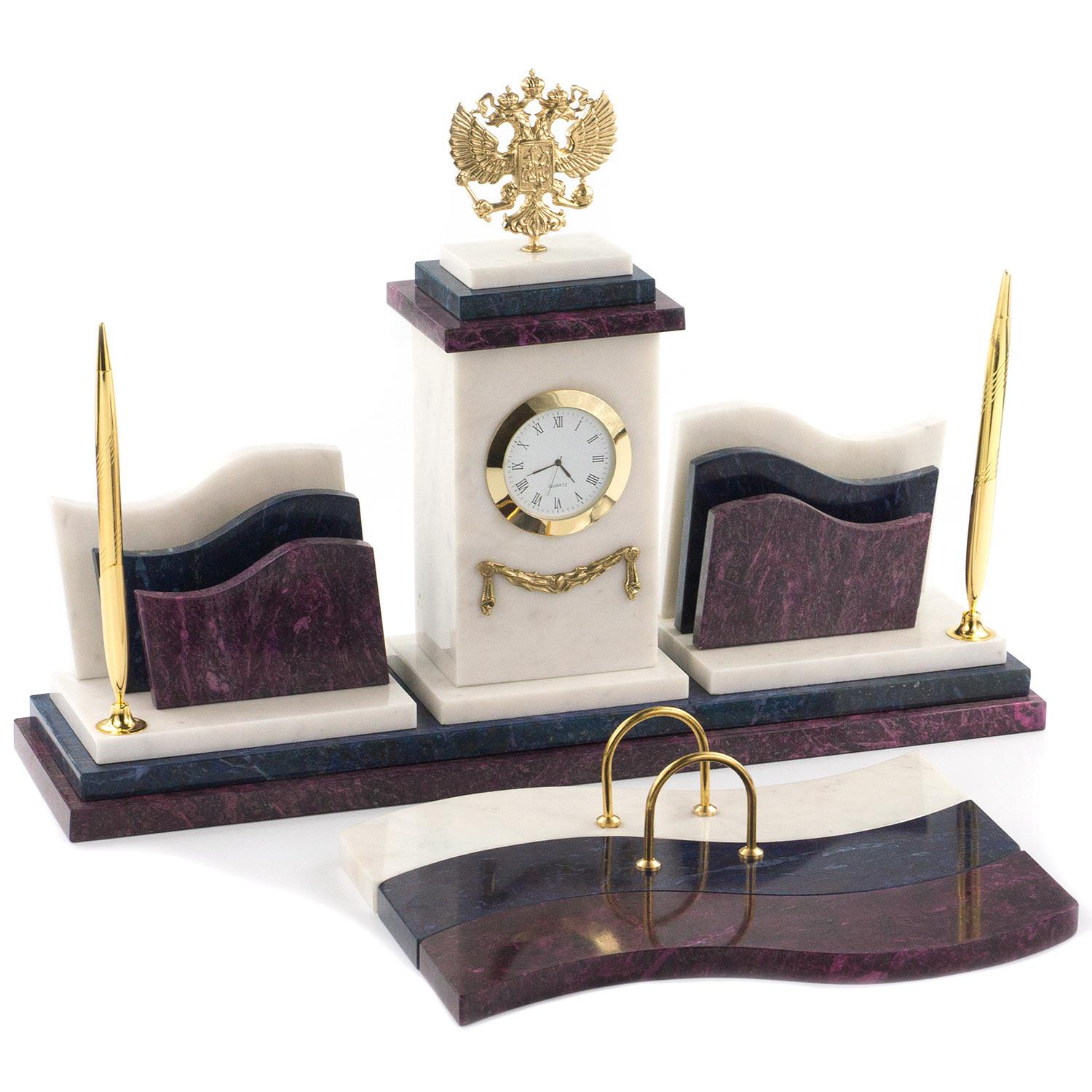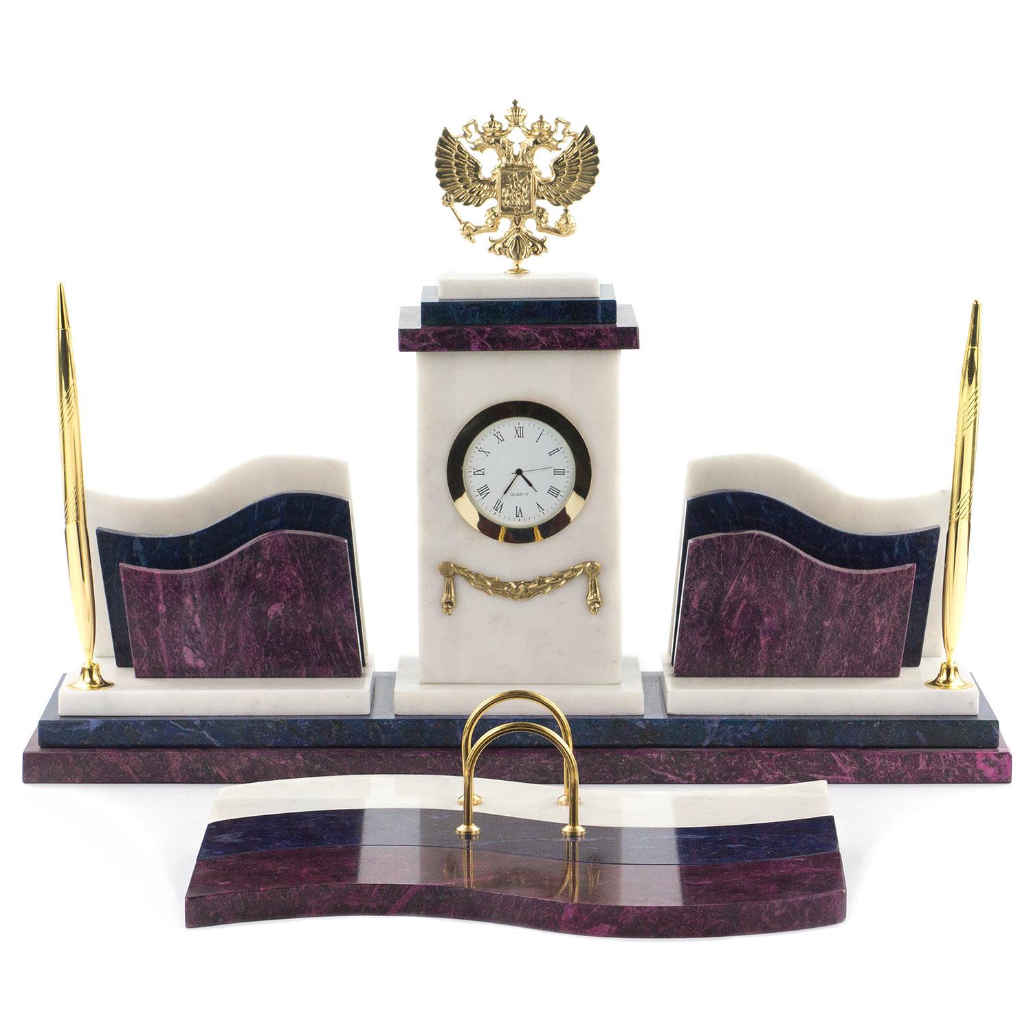 Настольный набор герб мрамор змеевик 445х325х300 мм 8400 гр.