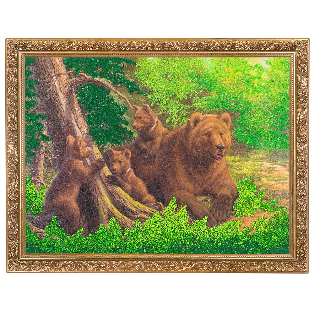 Картина "медведица с медвежатами" багет гипс №4 (30х40 см) к919