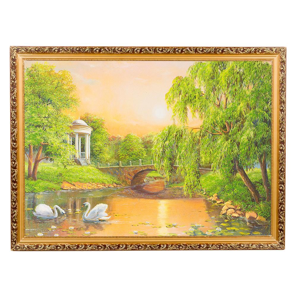 Картина "лебеди на закате" багет №7 (50х70 см) к133