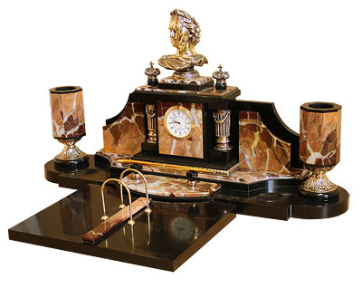 Настольный набор петр 1 камень яшма арт.3246. Вес 20000 г Размер часы 53х30х33 см, календарница 24,5х18х 2 см Материал яшма, бронза, долерит  развернуть описание ▼