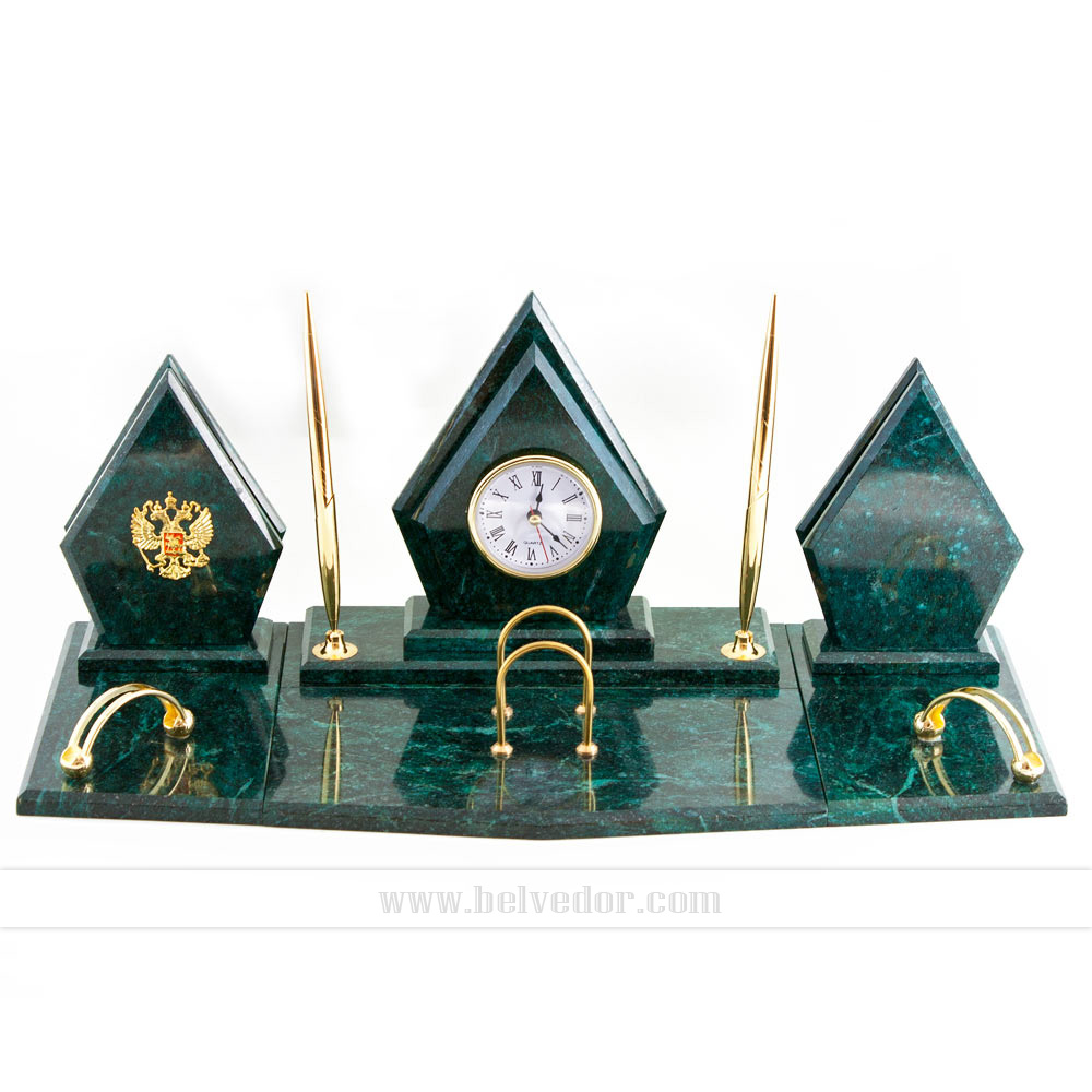 Настольный набор "ромб" камень змеевик