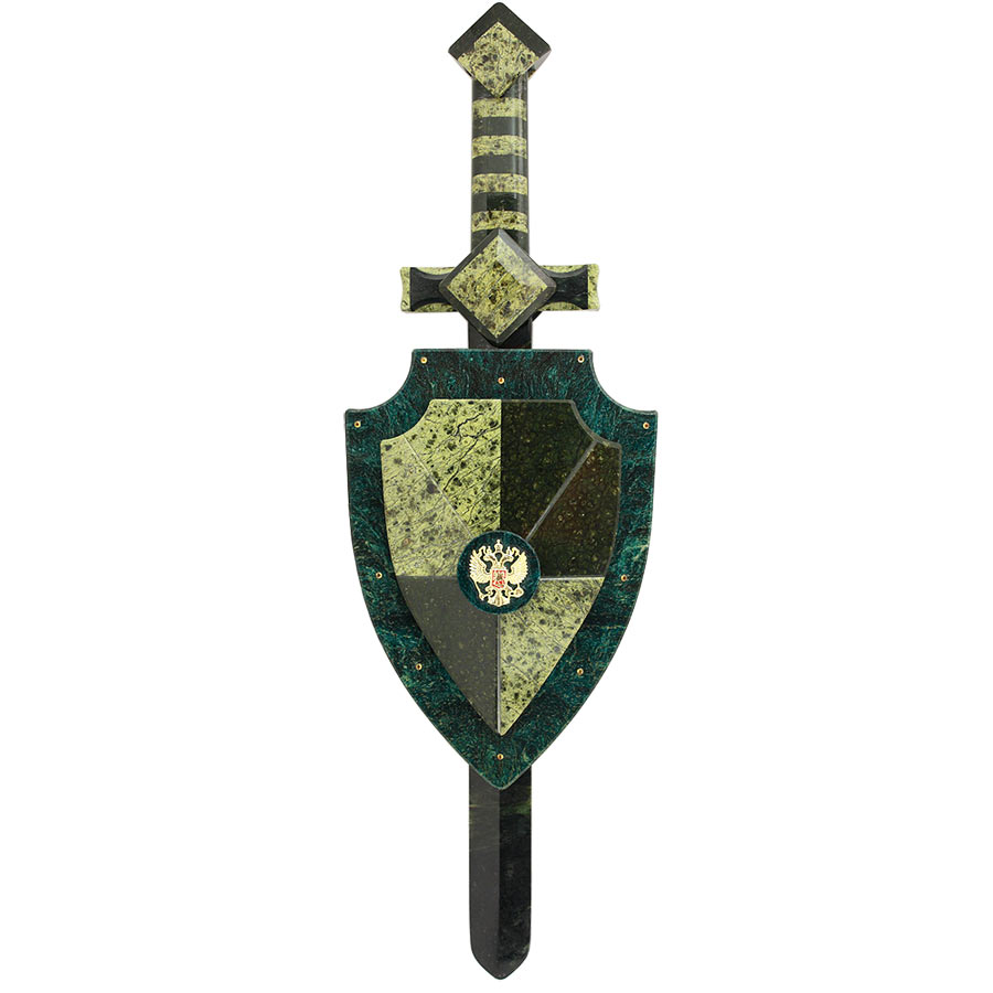 Настенный "щит и меч" с гербом россии камень змеевик