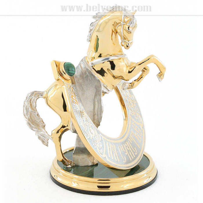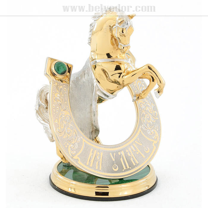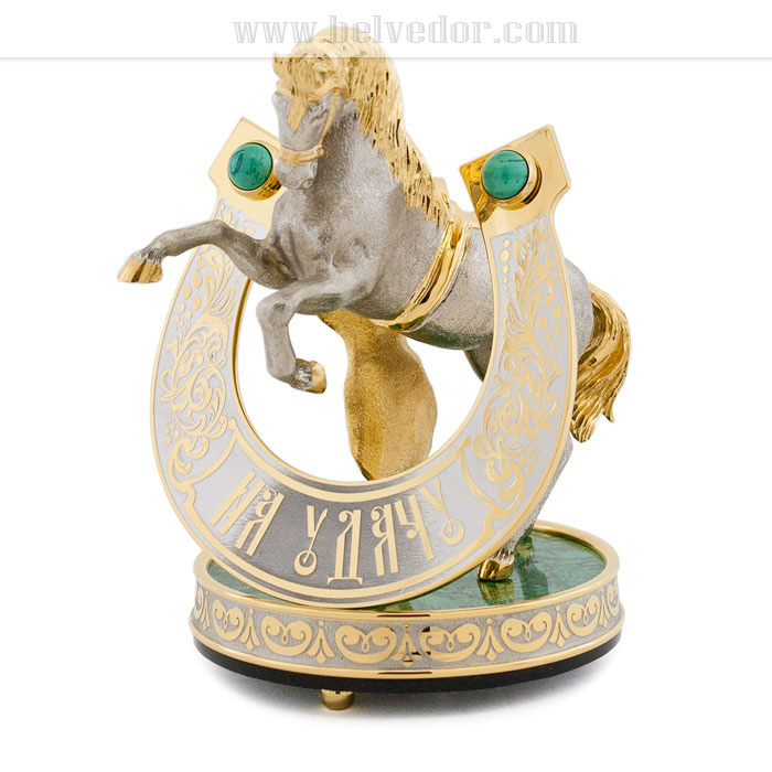 Сувенир подкова на удачу камень малахит арт.3801. Вес 2000 г Размер 11х13х16 см Материал малахит, бронза, никель, покрытие золотом (999,9).  развернуть описание ▼