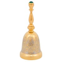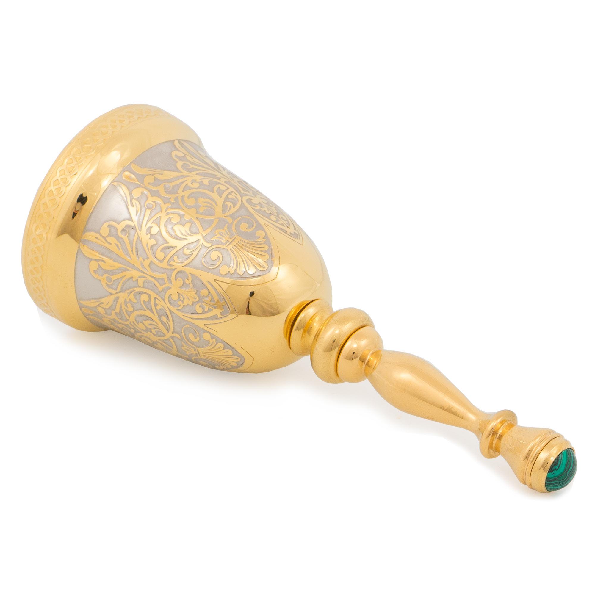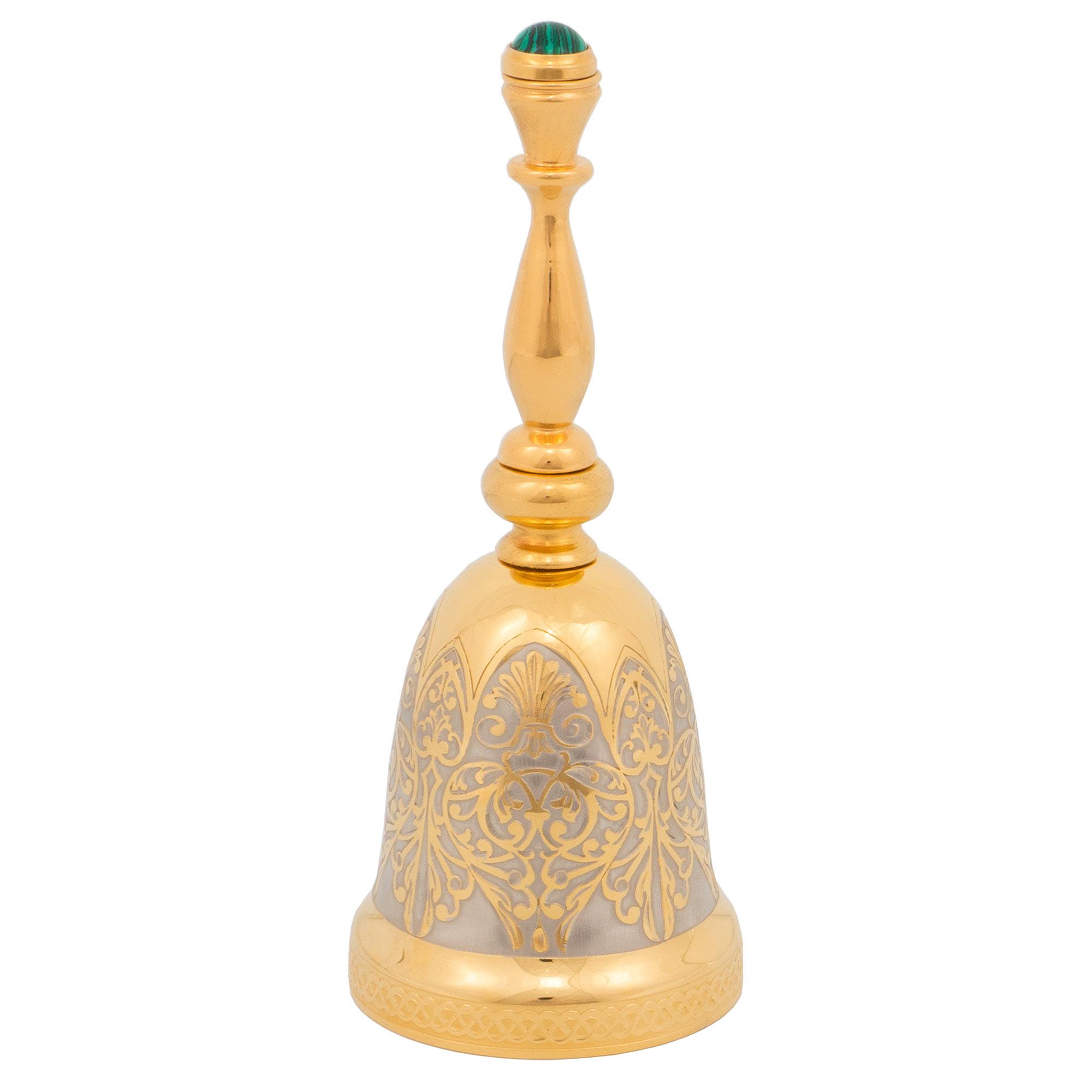 Колокольчик малахит позолота. Вес 900 г Размер 6х6х14,5 см Материал малахит, бронза, латунь, никель, покрытие золотом (999,9).  развернуть описание ▼