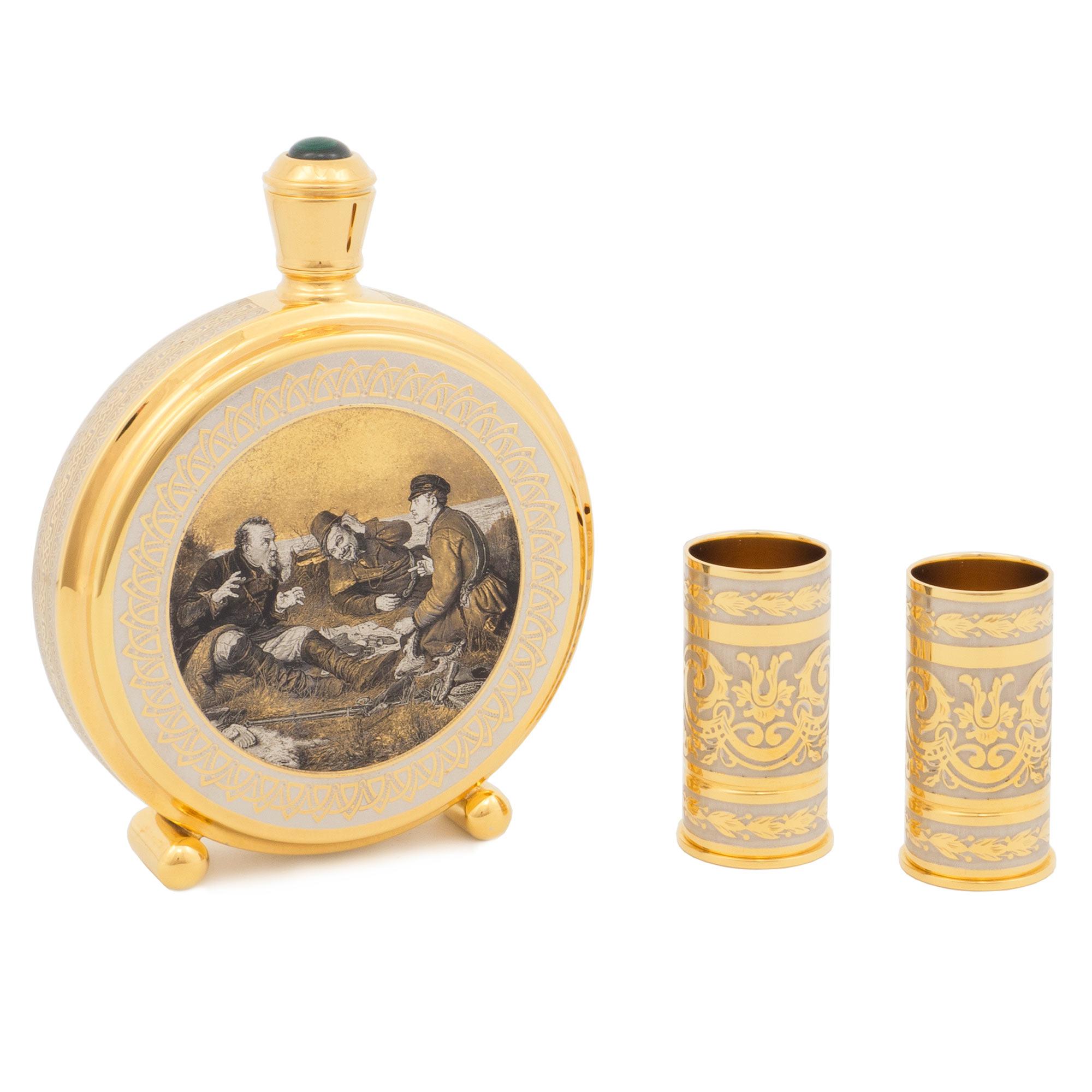 Фляжка 12,5х5,5х15 см. Стопка: Высота 6 см . Диаметр: 4 см .