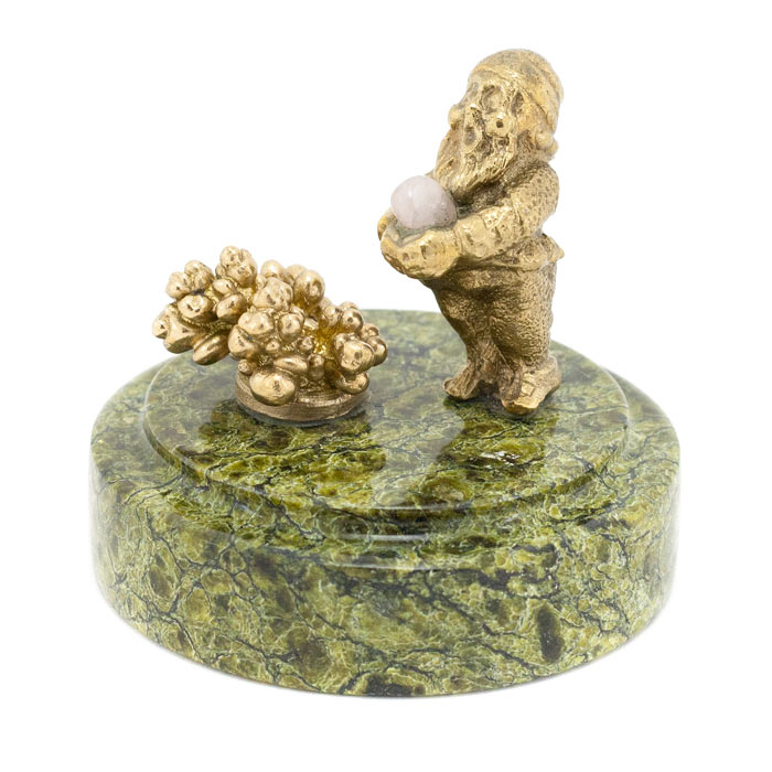 Статуэтка "гномик" бронза змеевик