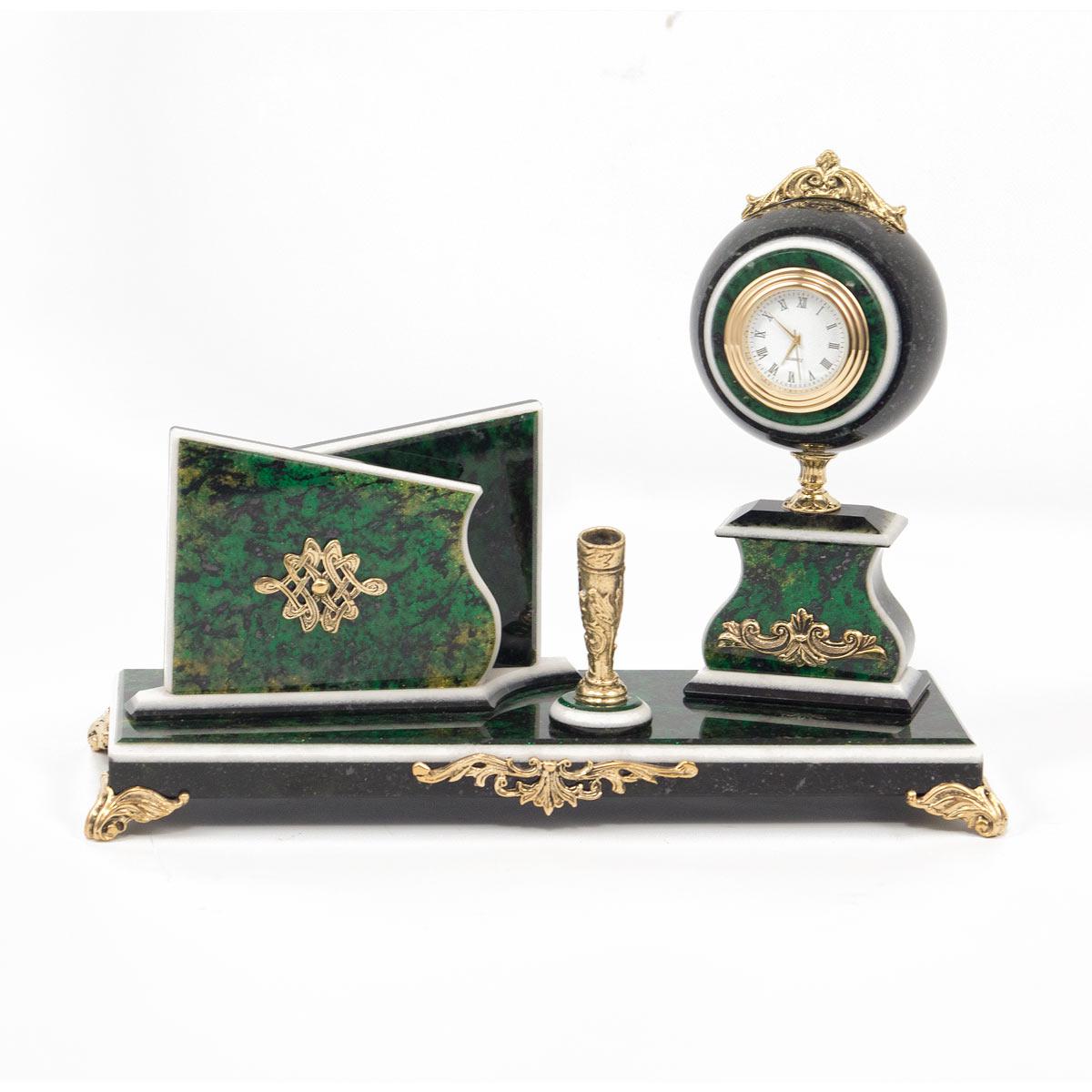 Мини-набор с шаром змеевик зеленый . Вес 1950 г Размер 25х9,5х18 см Материал змеевик, мрамор, бронза