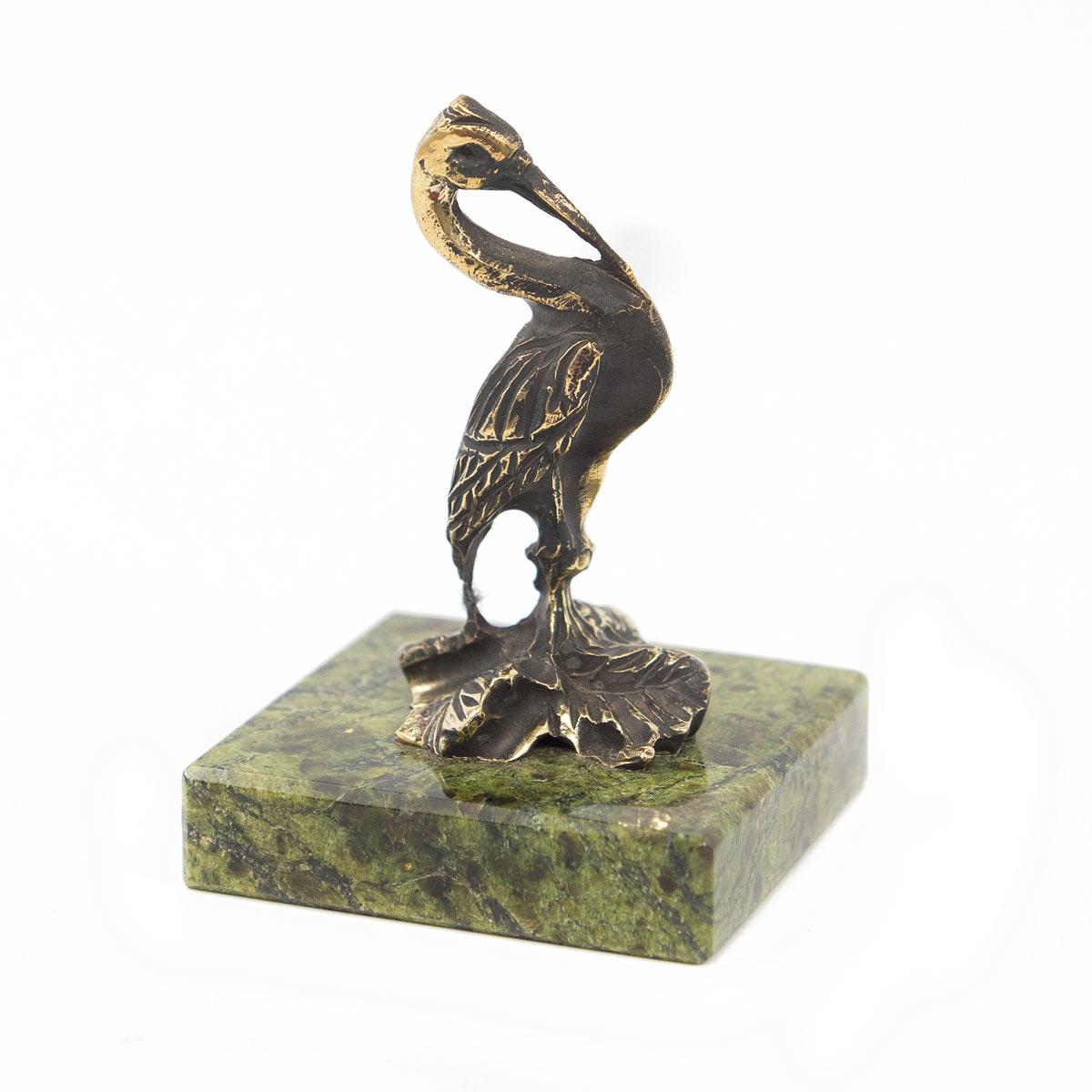 Статуэтка "цапля" бронза змеевик