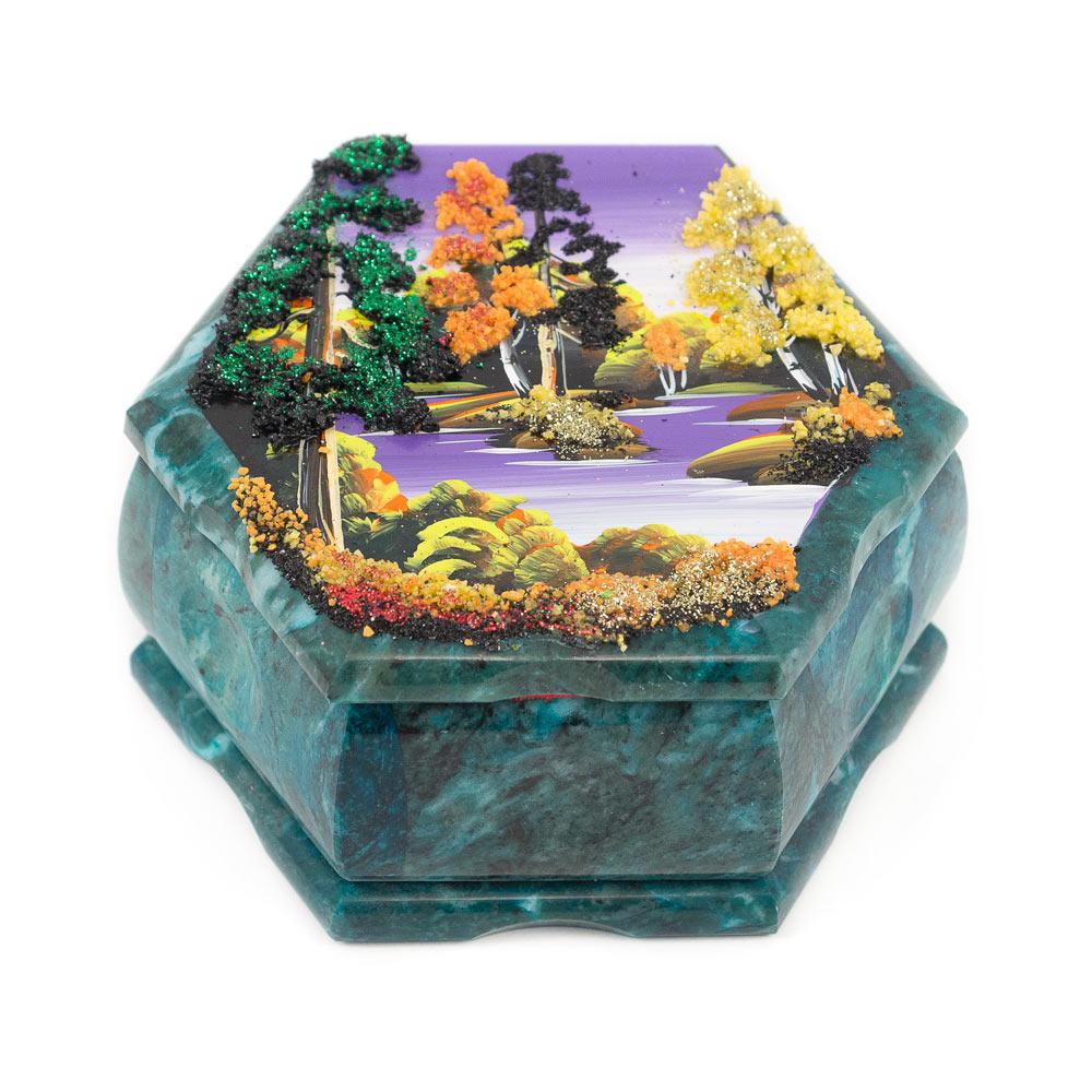 Шкатулка шестигранная с рисунком в ассортименте 140х125х70 мм 1300 гр. Шкатулка шестигранная с рисунком в ассортименте 140х125х70 мм 1300 гр.