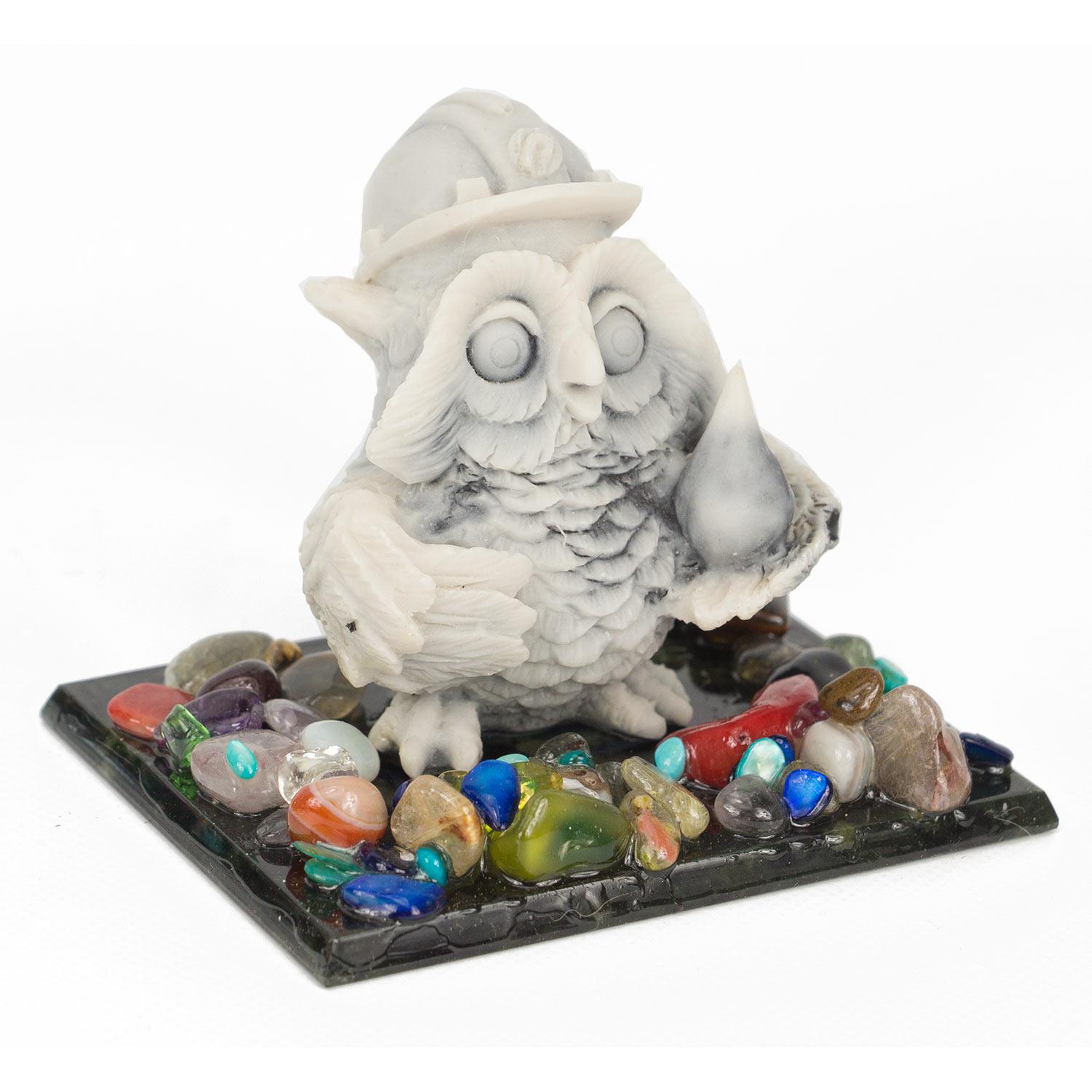Сувенир "филин нефтяник" змеевик мрамолит самоцветы 80х60х65 мм