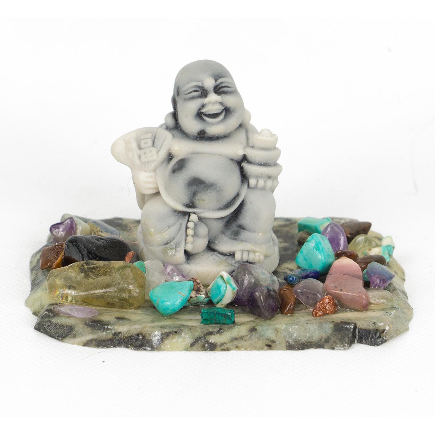 Сувенир "хотей №3" змеевик мрамолит самоцветы 80х60х40 мм 100 гр
