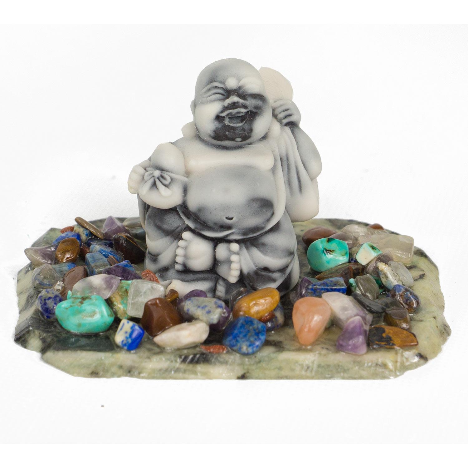 Сувенир "хотей №9" змеевик мрамолит самоцветы 80х60х40 мм 100 гр