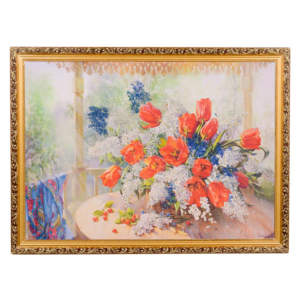 Картина "тюльпаны с черёмухой" багет №7 (50х70 см) до17