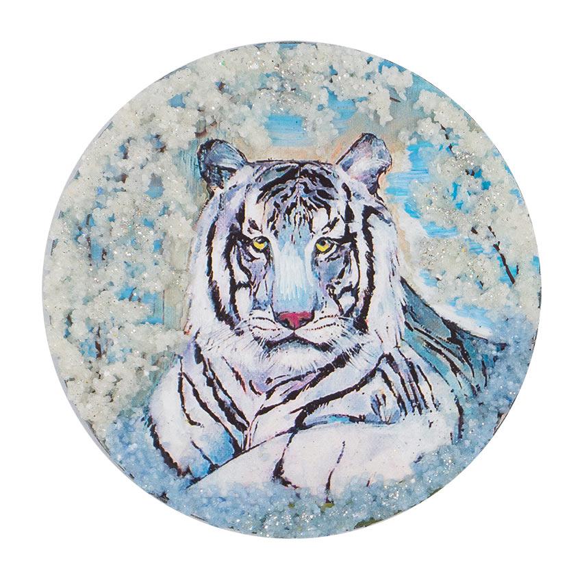 Магнит с рисунком "белый тигр" змеевик 110х110 мм 95 гр.. Вес 95 г Размер 11х11 см Материал змеевик, рисунок из каменной крошки на репродукции  развернуть описание ▼