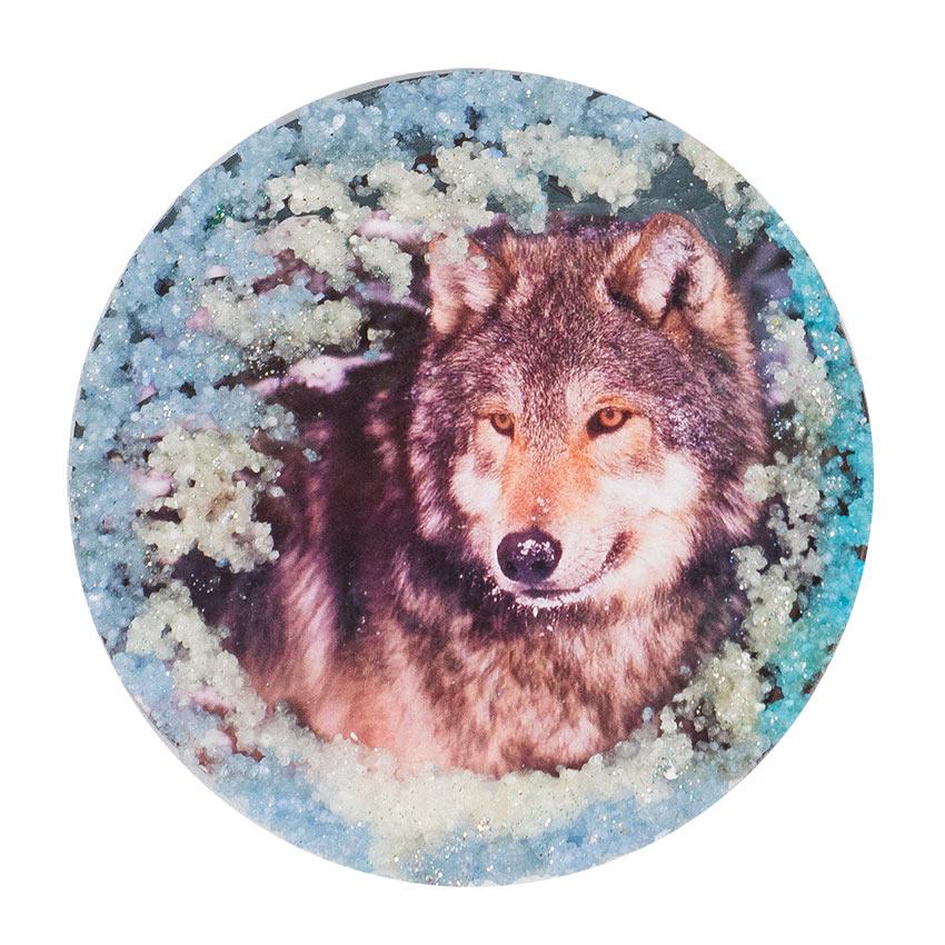 Магнит с рисунком "волк" змеевик 110х110 мм 95 гр.. Вес 95 г Размер 11х11 см Материал змеевик, рисунок из каменной крошки на репродукции  развернуть описание ▼