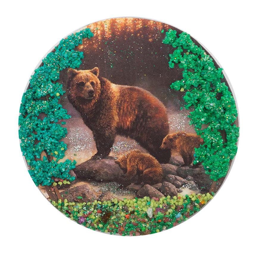 Магнит с рисунком "медвежье семейство" змеевик 110х110 мм 95 гр.