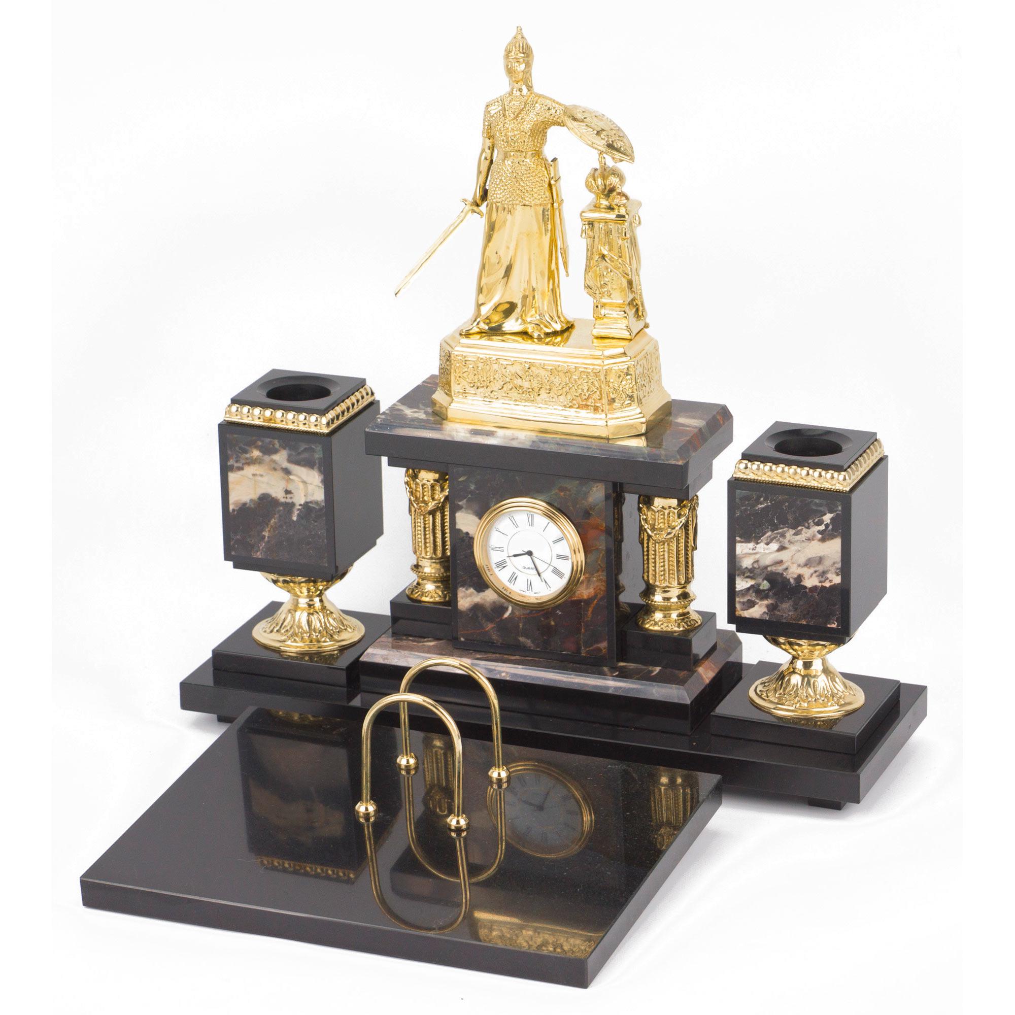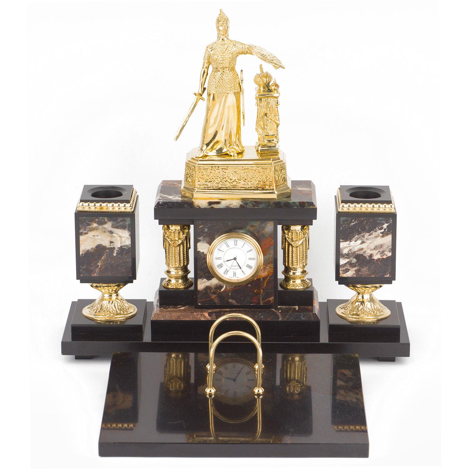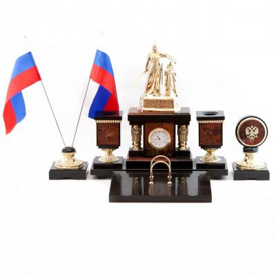 Настольный набор "россия" яшма долерит бронза 340х290х340 мм . Вес 14000 г Размер часы 34х11х34 см, календарница 24х18х2,5 см Материал яшма, бронза, долерит  развернуть описание ▼