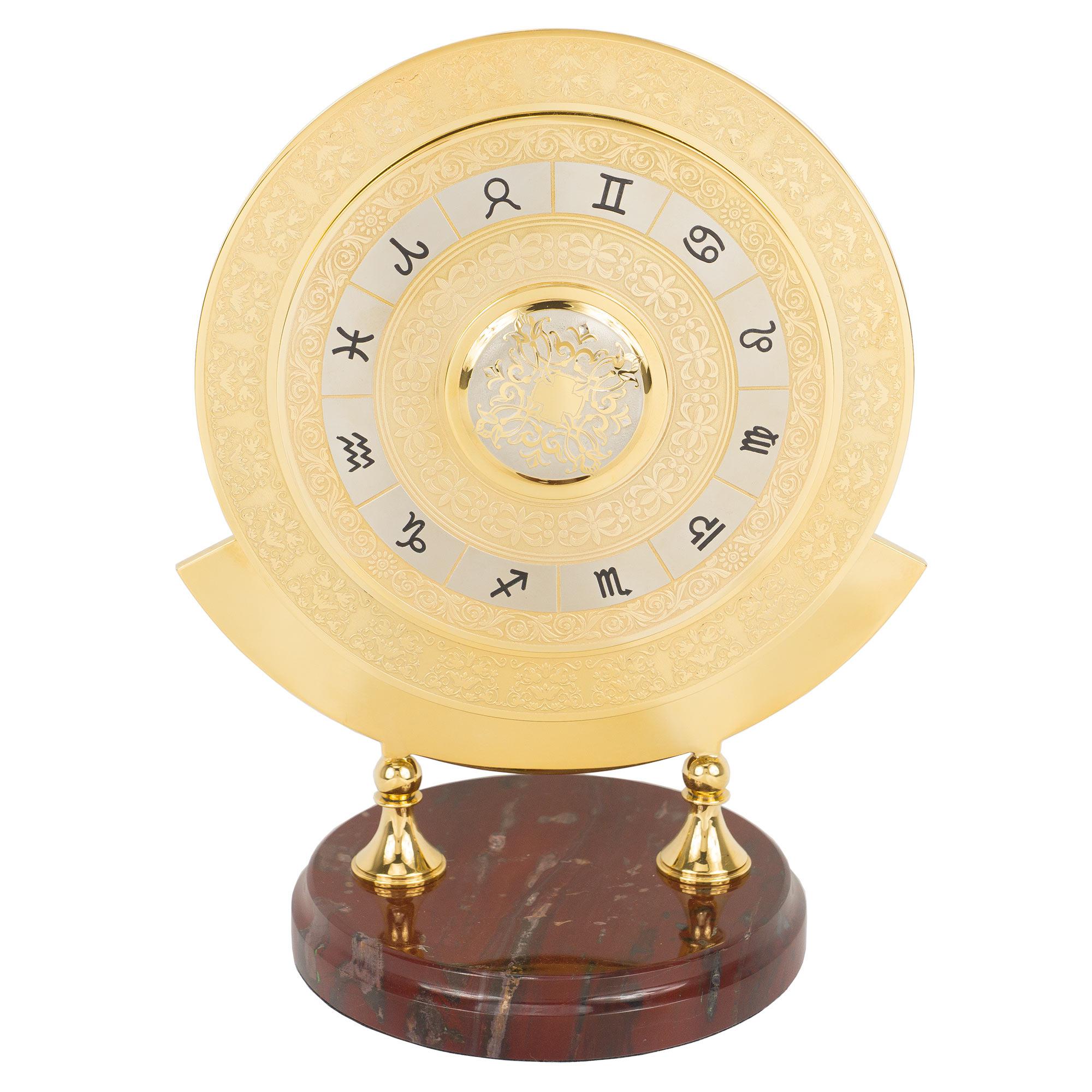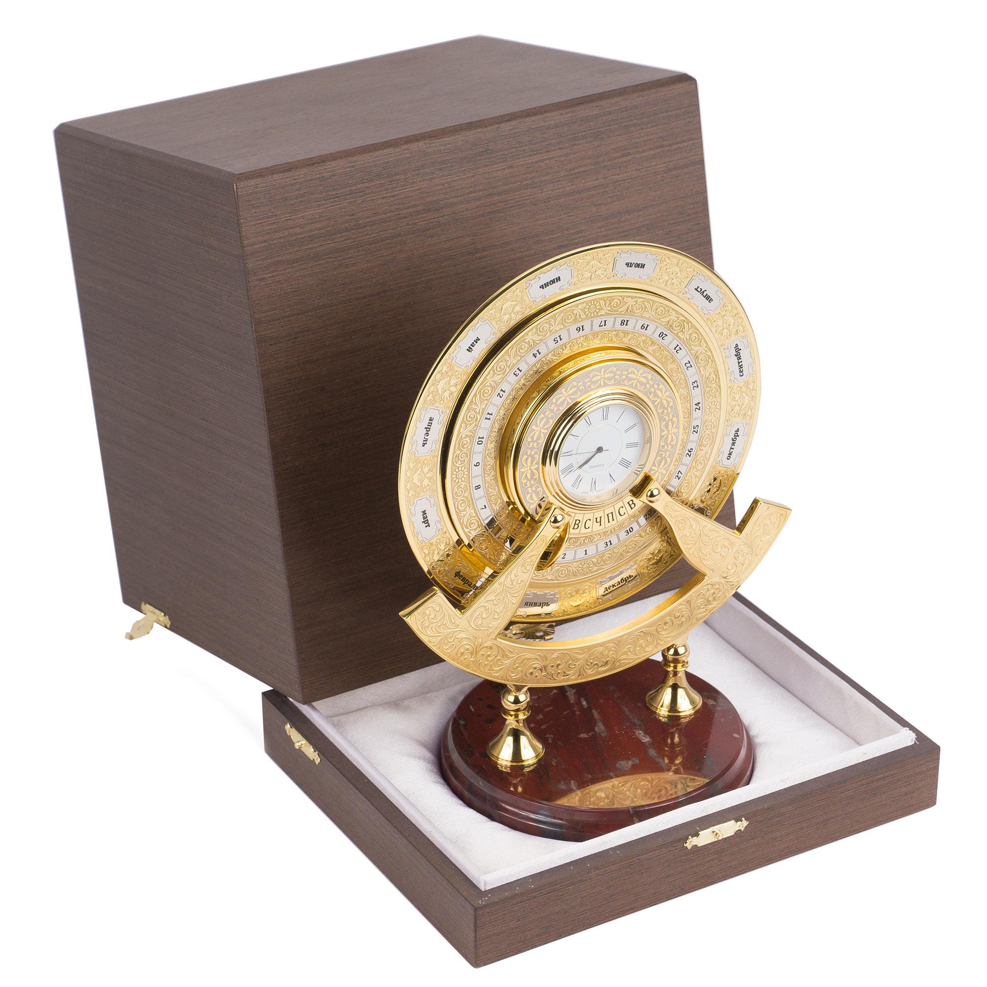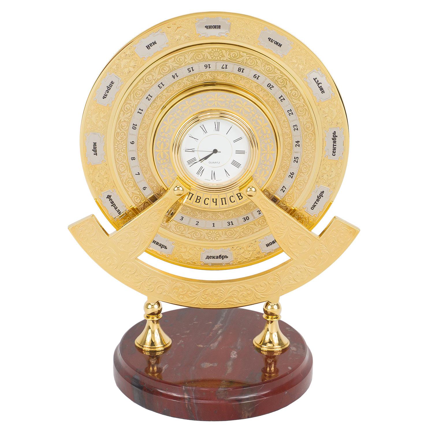 Часы "вечный календарь" яшма латунь позолота 190х135х240 мм. Вес 4350 г Размер 19х13,5х24 см Материал яшма, латунь, никель, покрытие золотом (999,9).  развернуть описание ▼