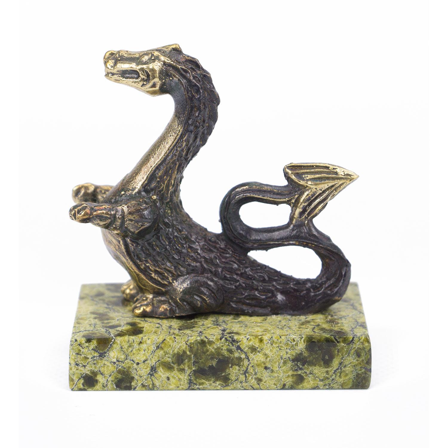Статуэтка "дракон" бронза змеевик 50х30х55 мм 100 гр.