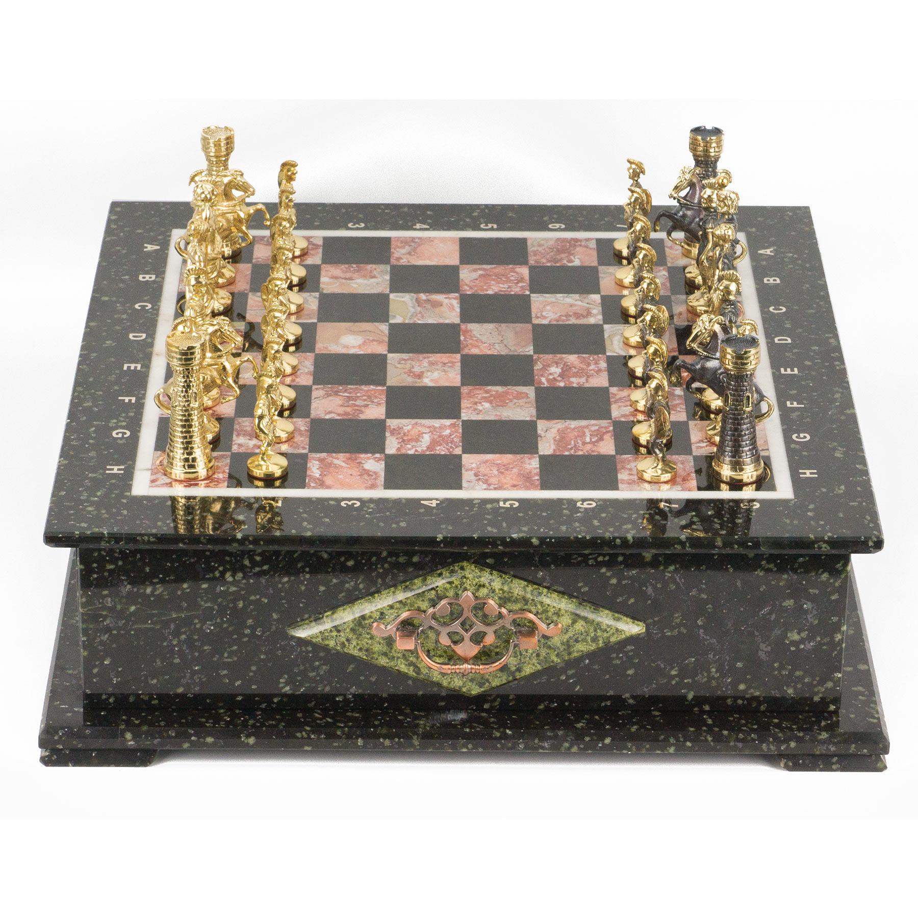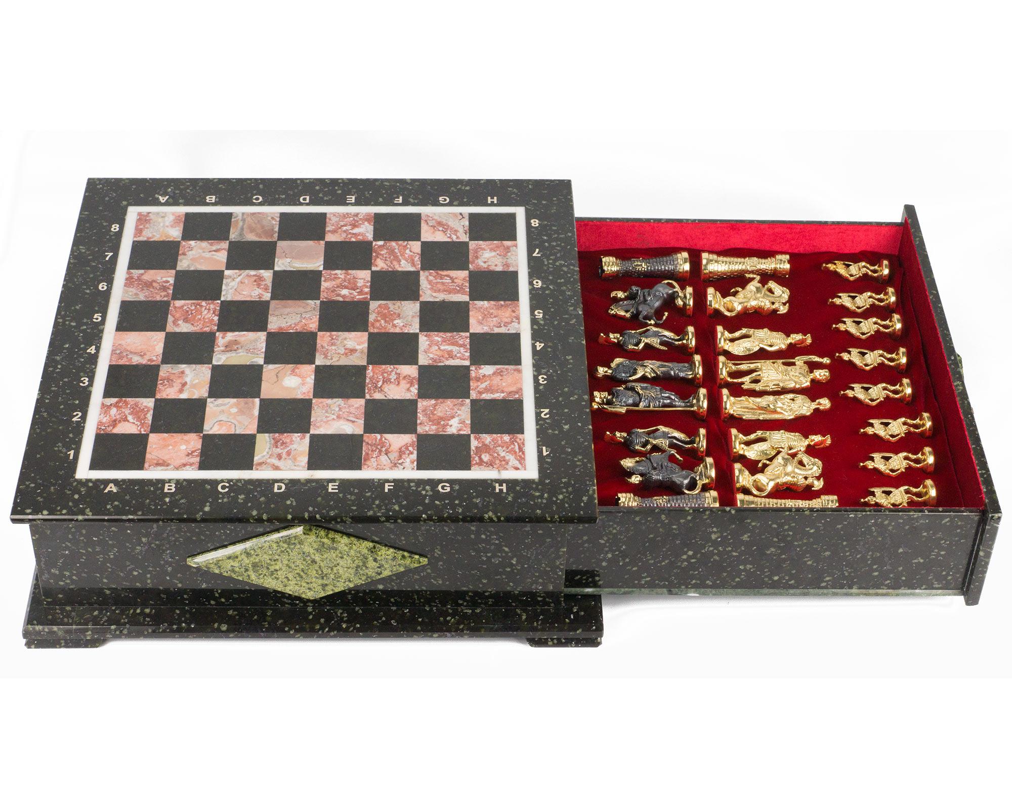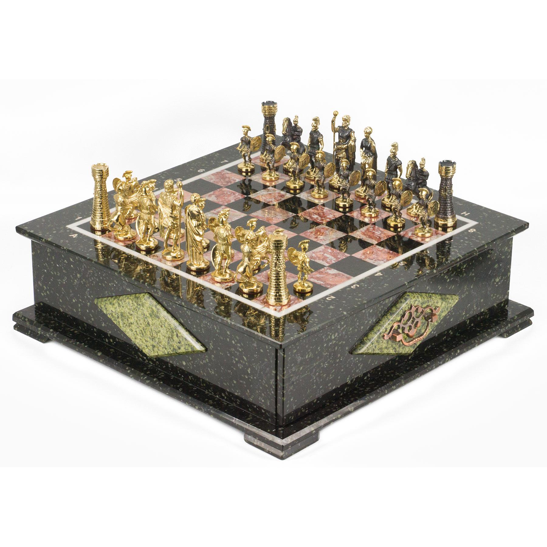 Шахматный ларец фигуры "римские" змеевик 420х420х150 мм 30 кг