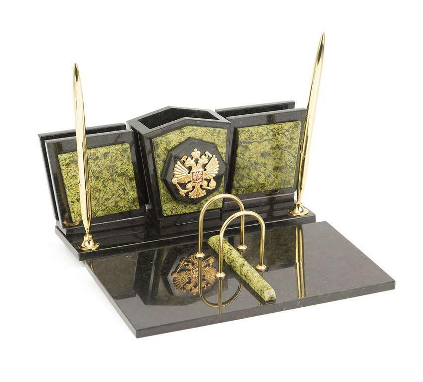 Настольный набор змеевик 260х235х130 мм 3500 гр.