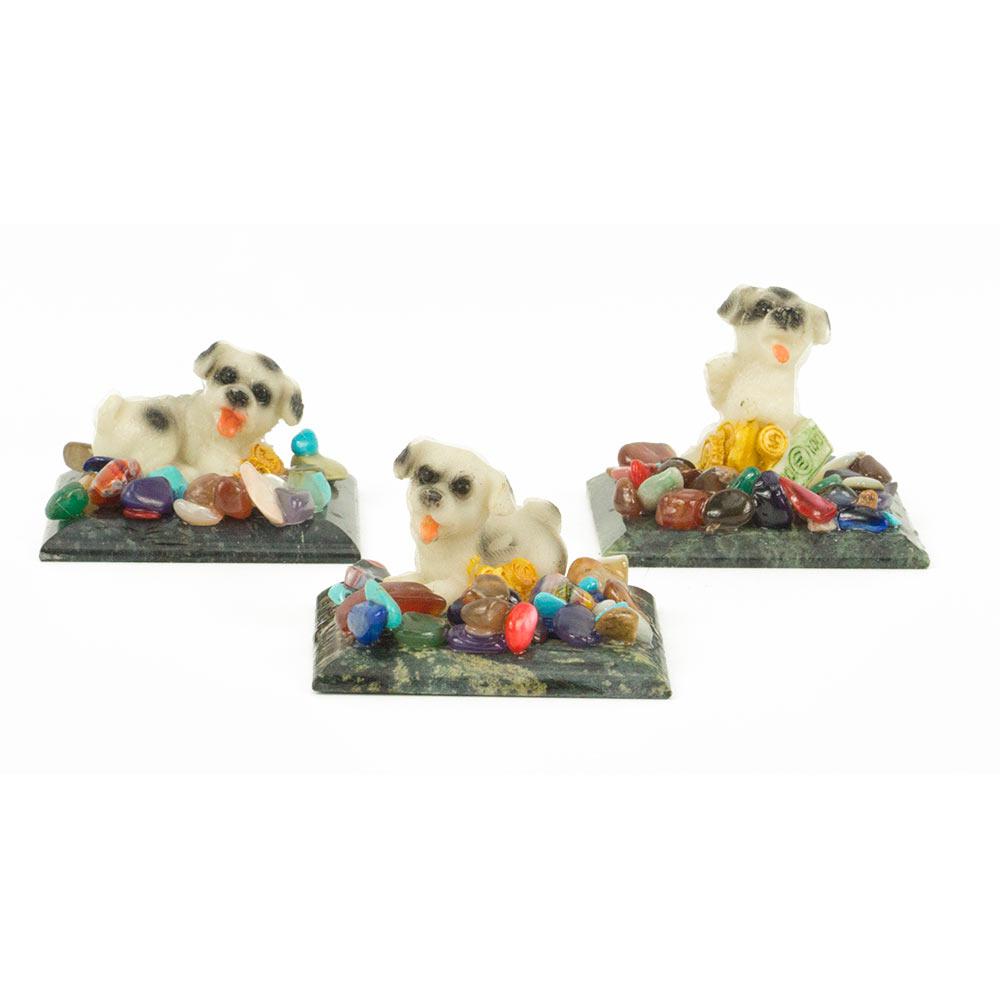 Сувенир "собачка с пятнами" змеевик самоцветы 50х50х40 мм в ассо.